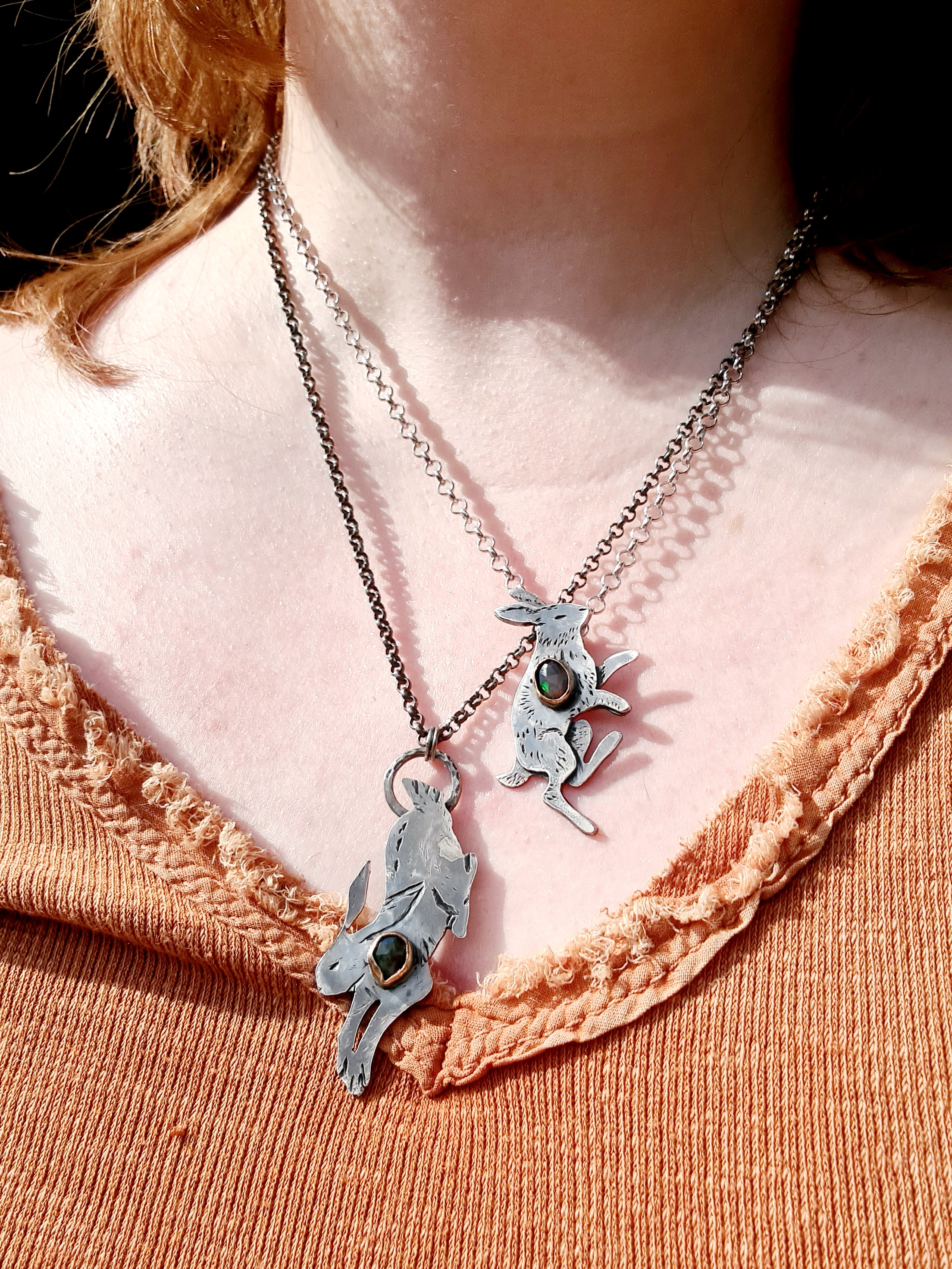 Der Anhänger ist ca. 5,5 x 2 cm groß. Die Kette ist ca. 50 cm lang.