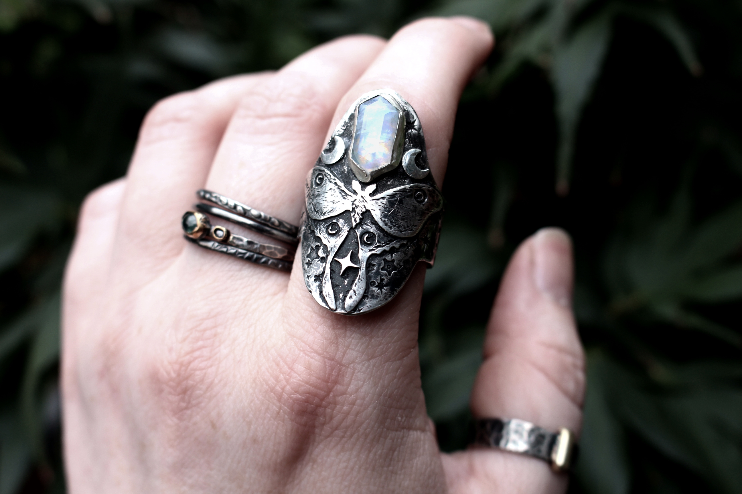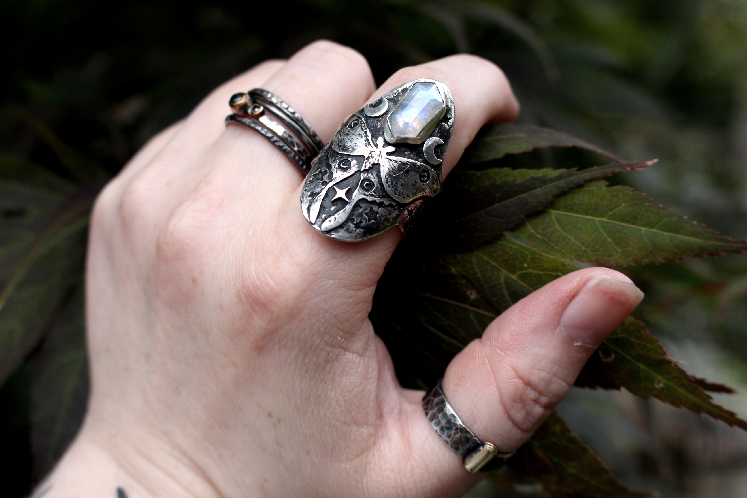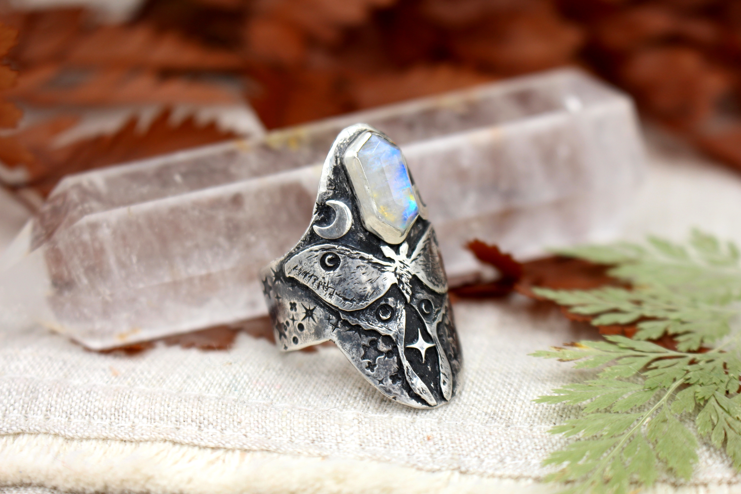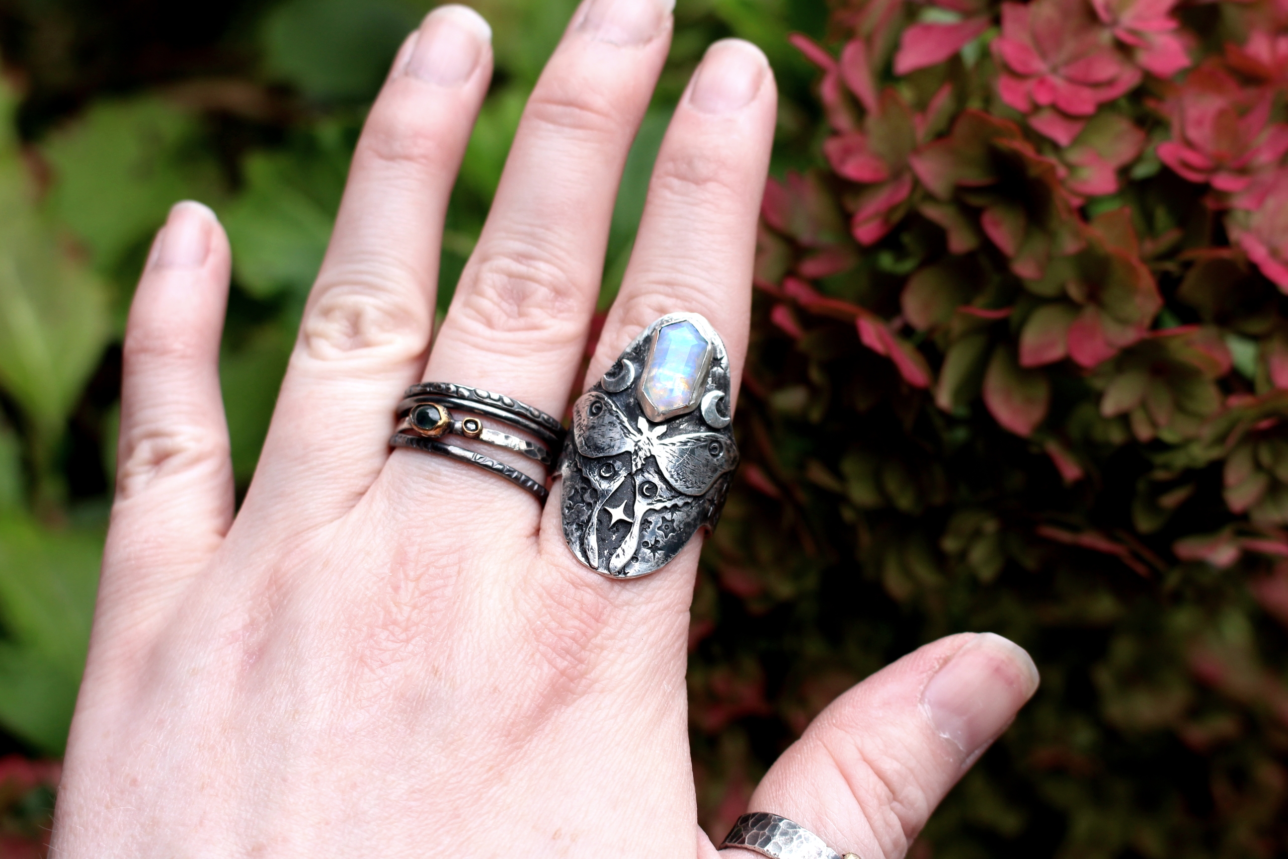 Sattelring Gr. 62 aus Sterlingsilber mit Mondstein