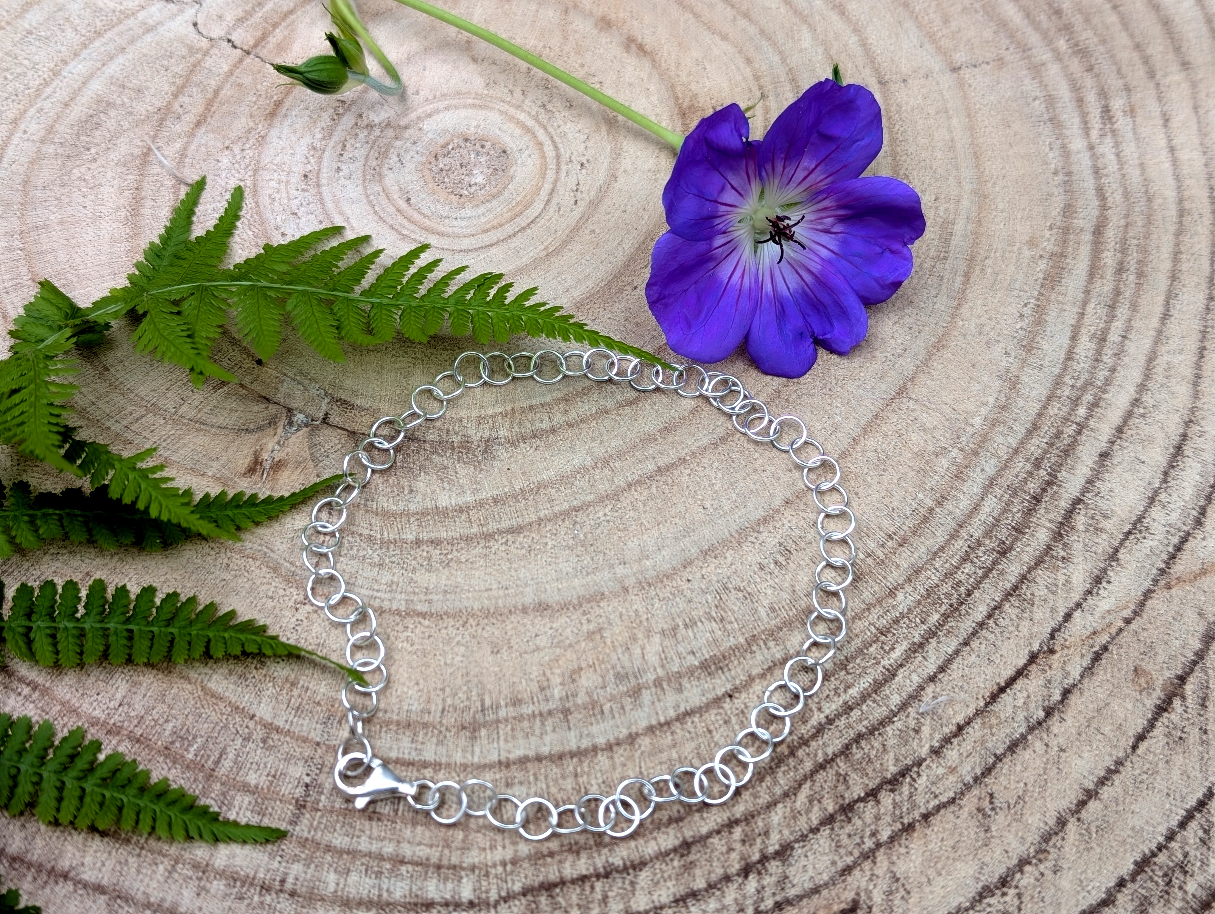 Handgemachtes Armband aus 925er Sterlingsilber mit Karabinerverschluss.
