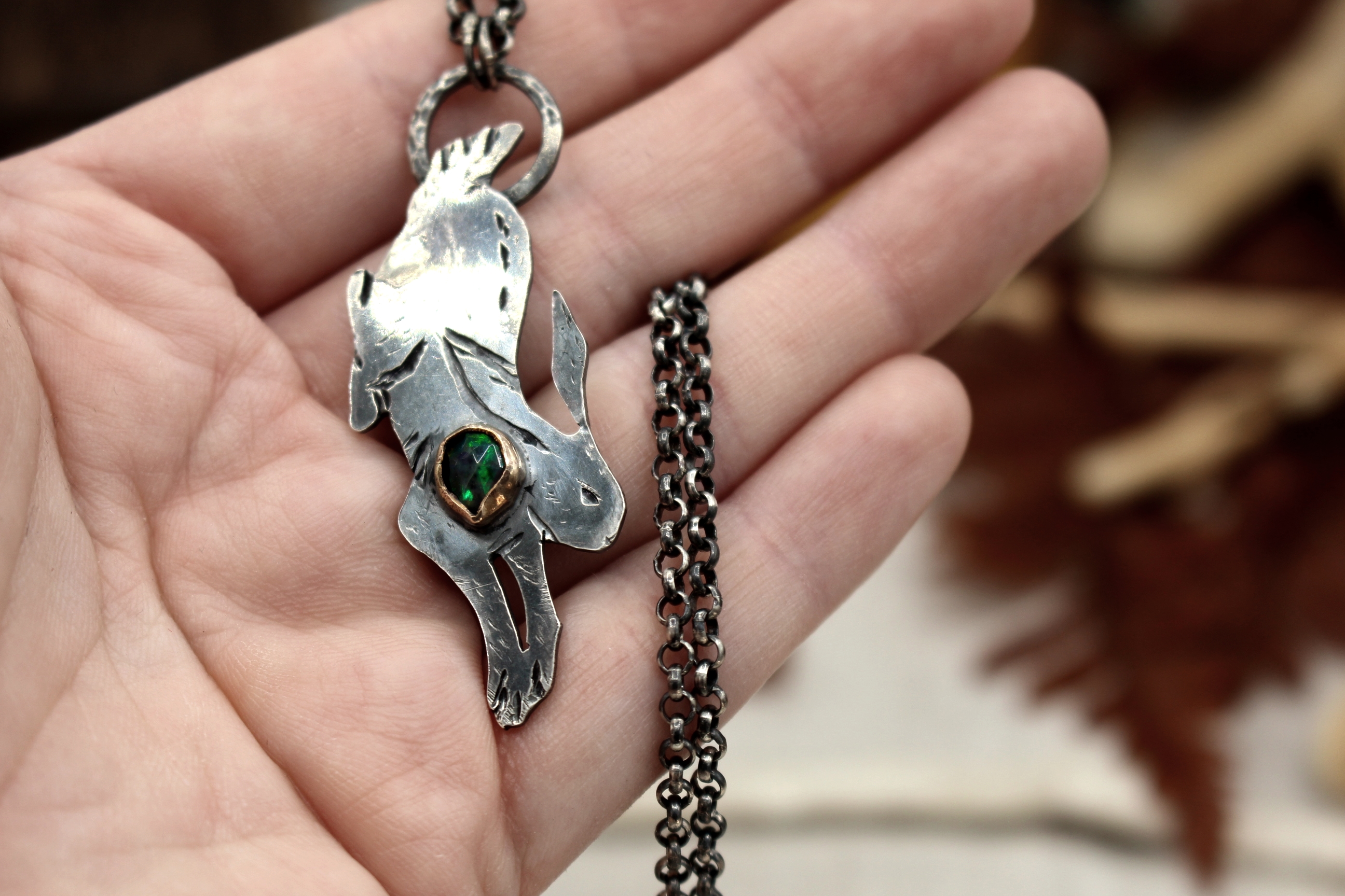Halskette aus Sterlingsilber mit 14/20 Gold und schwarzem Opal