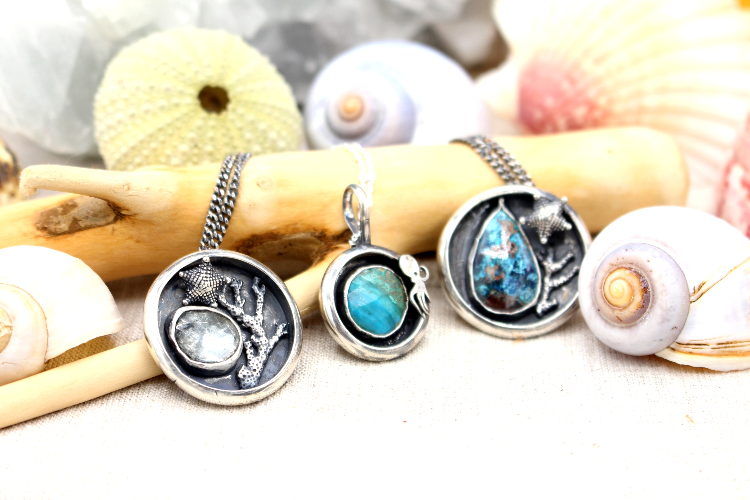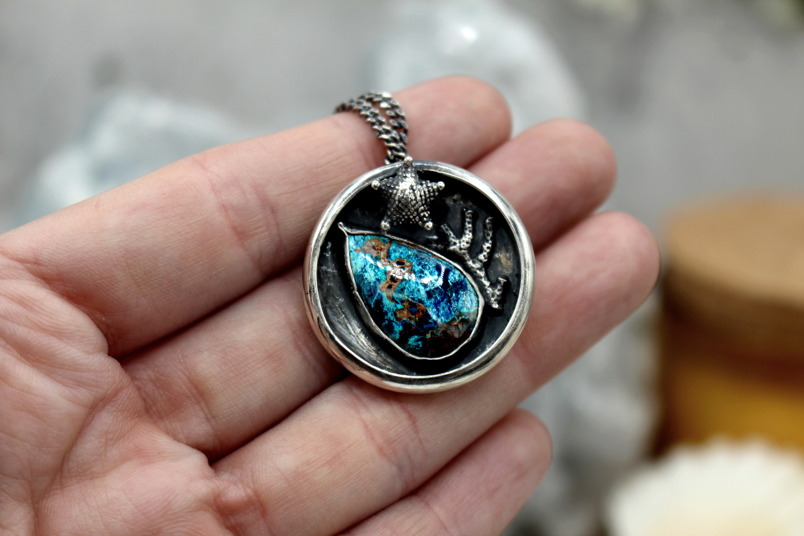 Halskette aus Sterlingsilber mit Shattuckit-Azurit