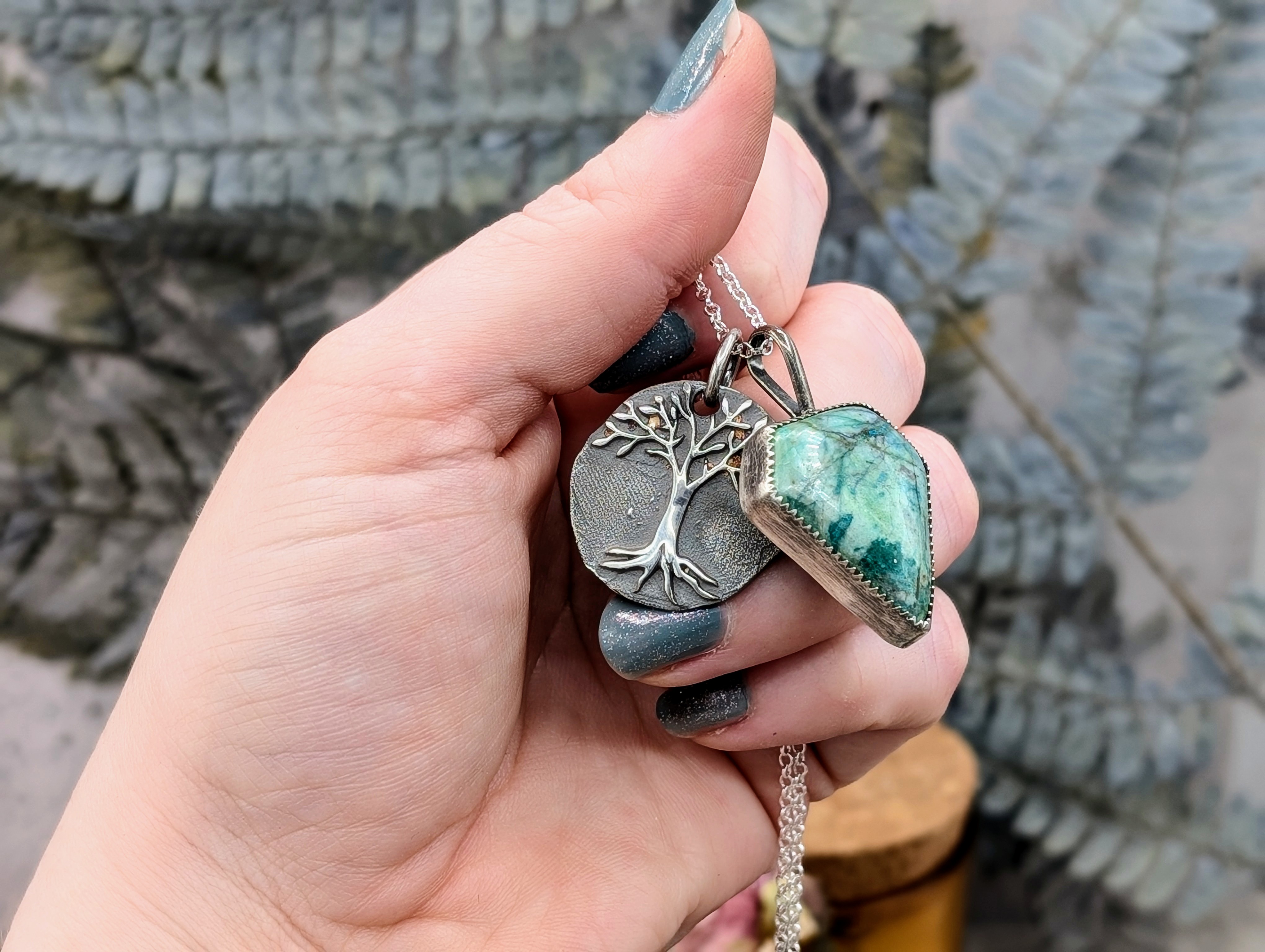 925er Sterlingsilber, Druidenstein oder Phoenix-Stein bzw. Ajoit aus Deutschland.