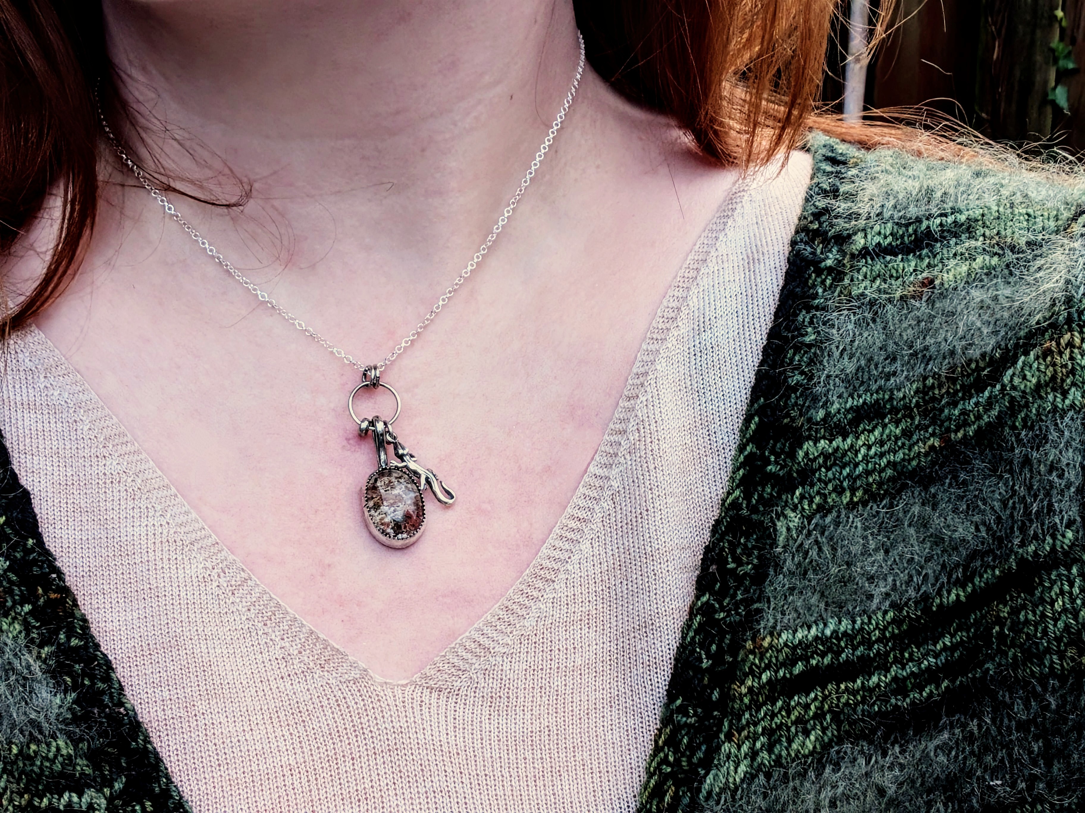 925er Sterlingsilber, großer Gartenquarz (natürlicher Lodolite).