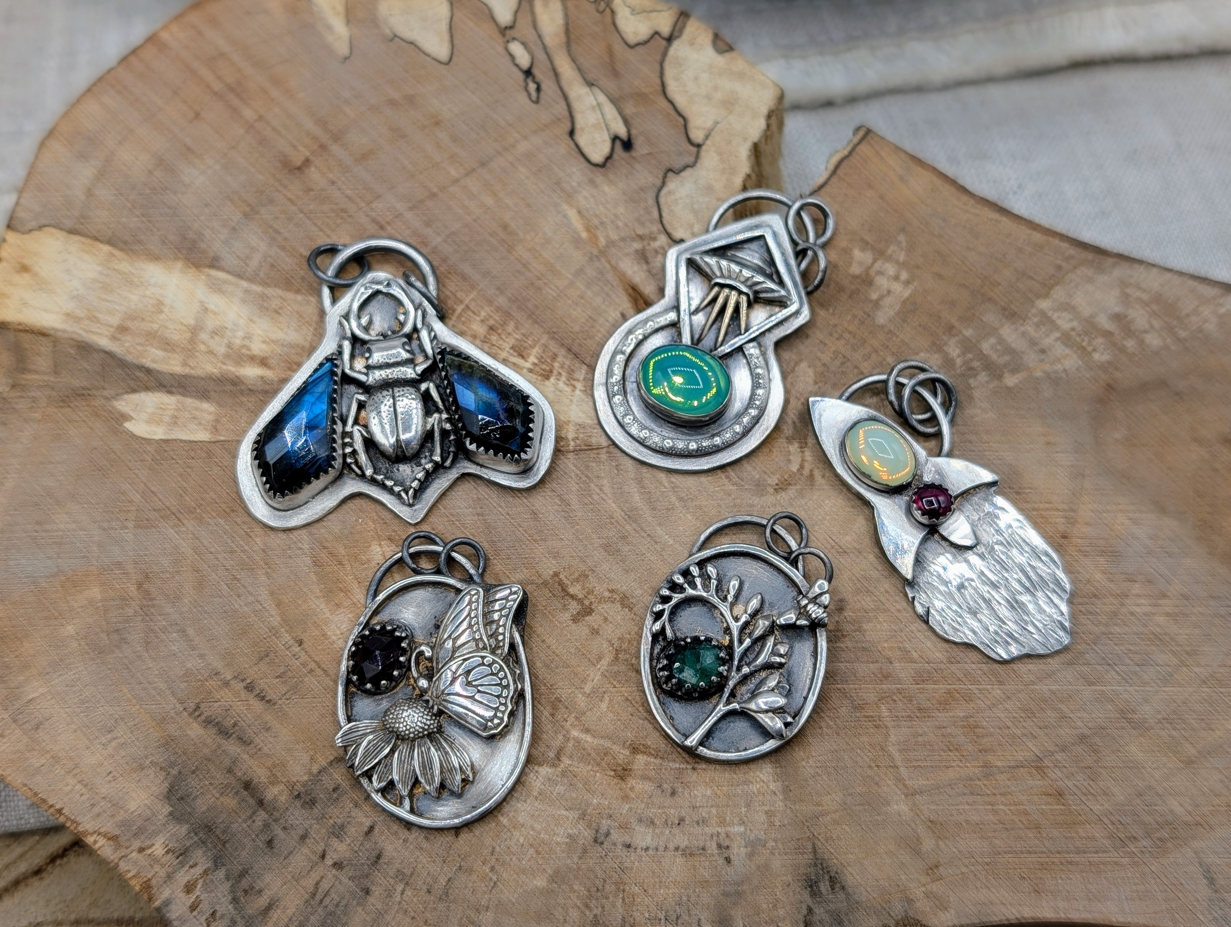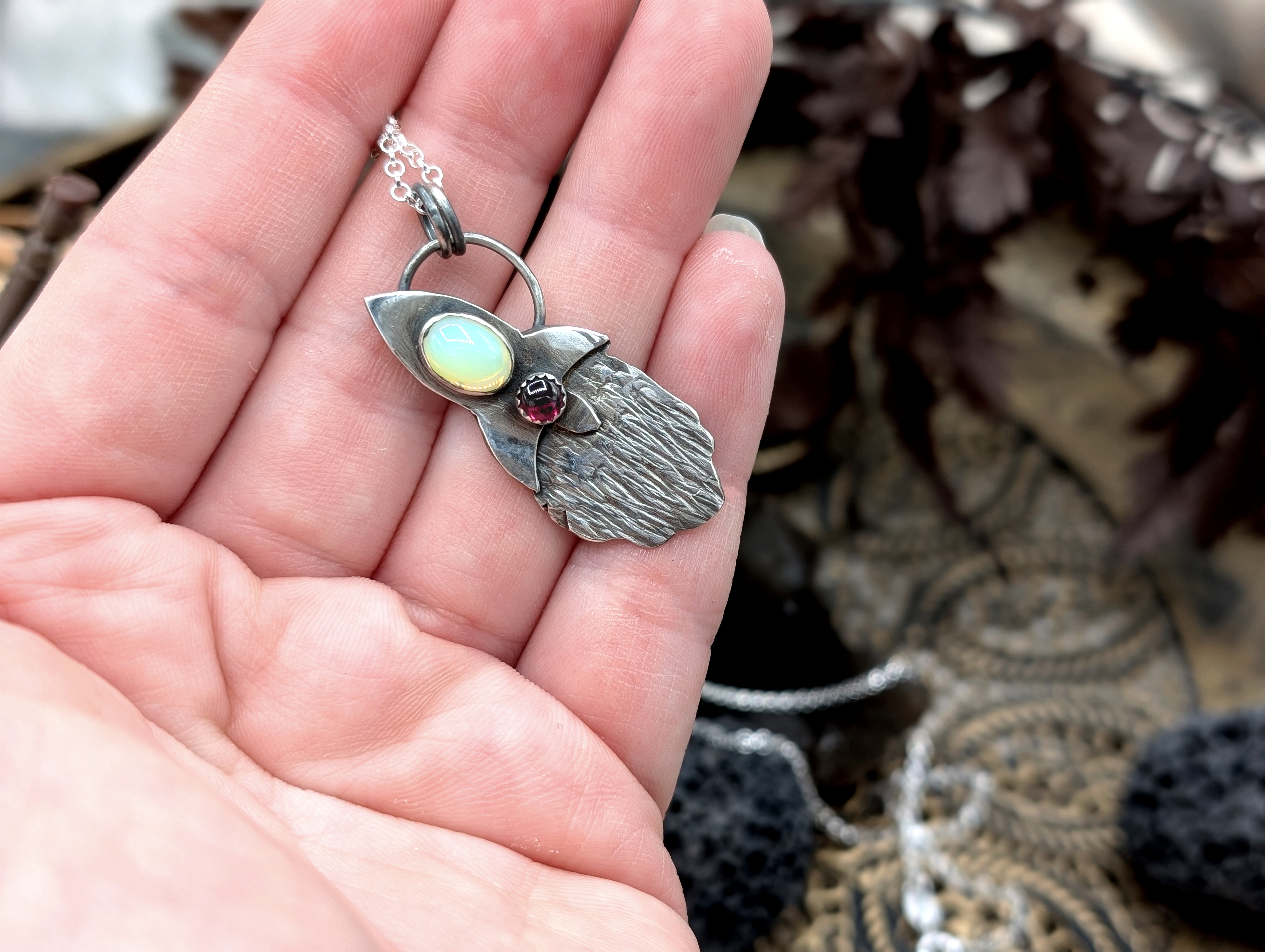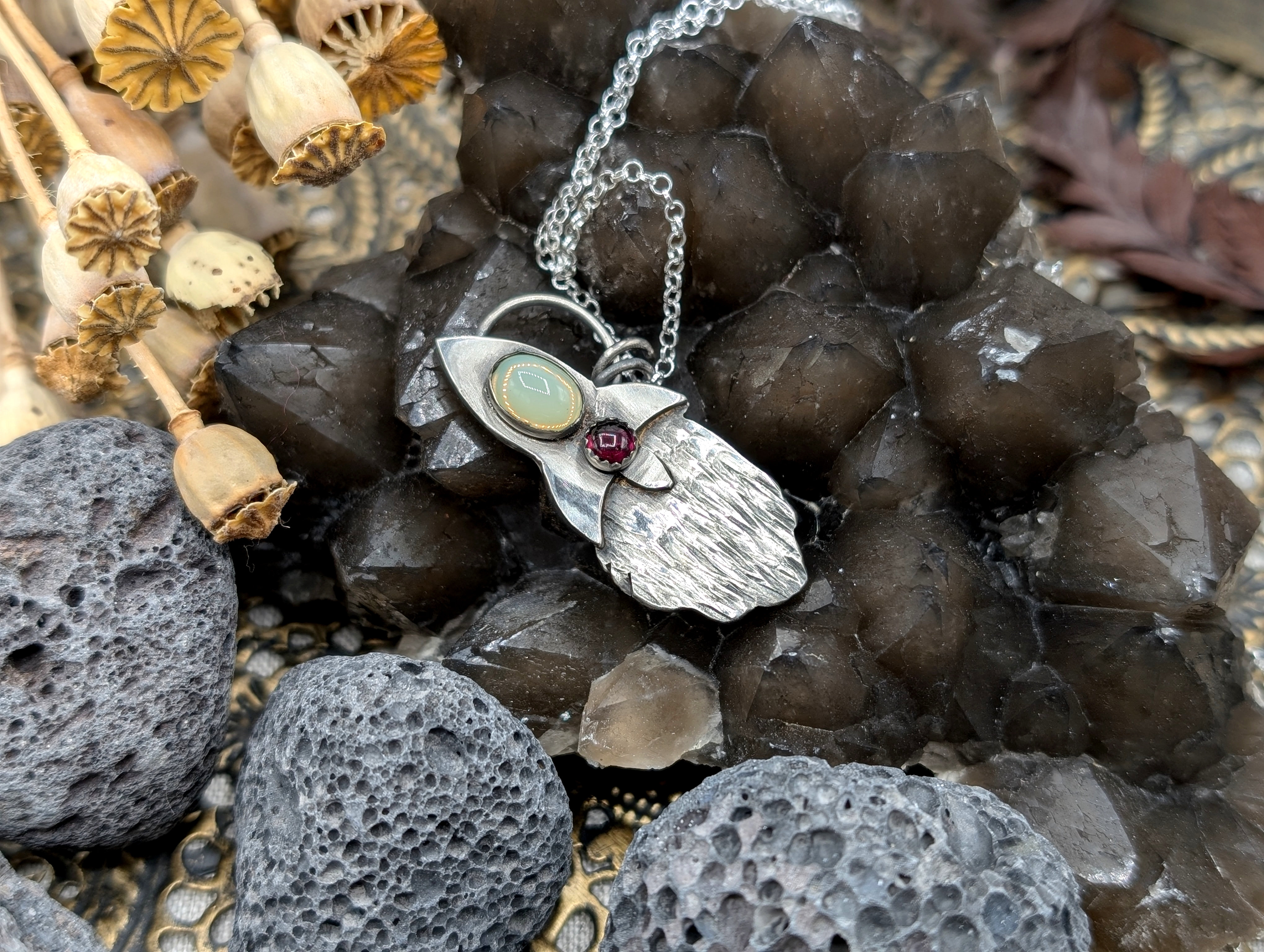 Halskette aus Sterlingsilber mit Vintage Uranglas und Granat