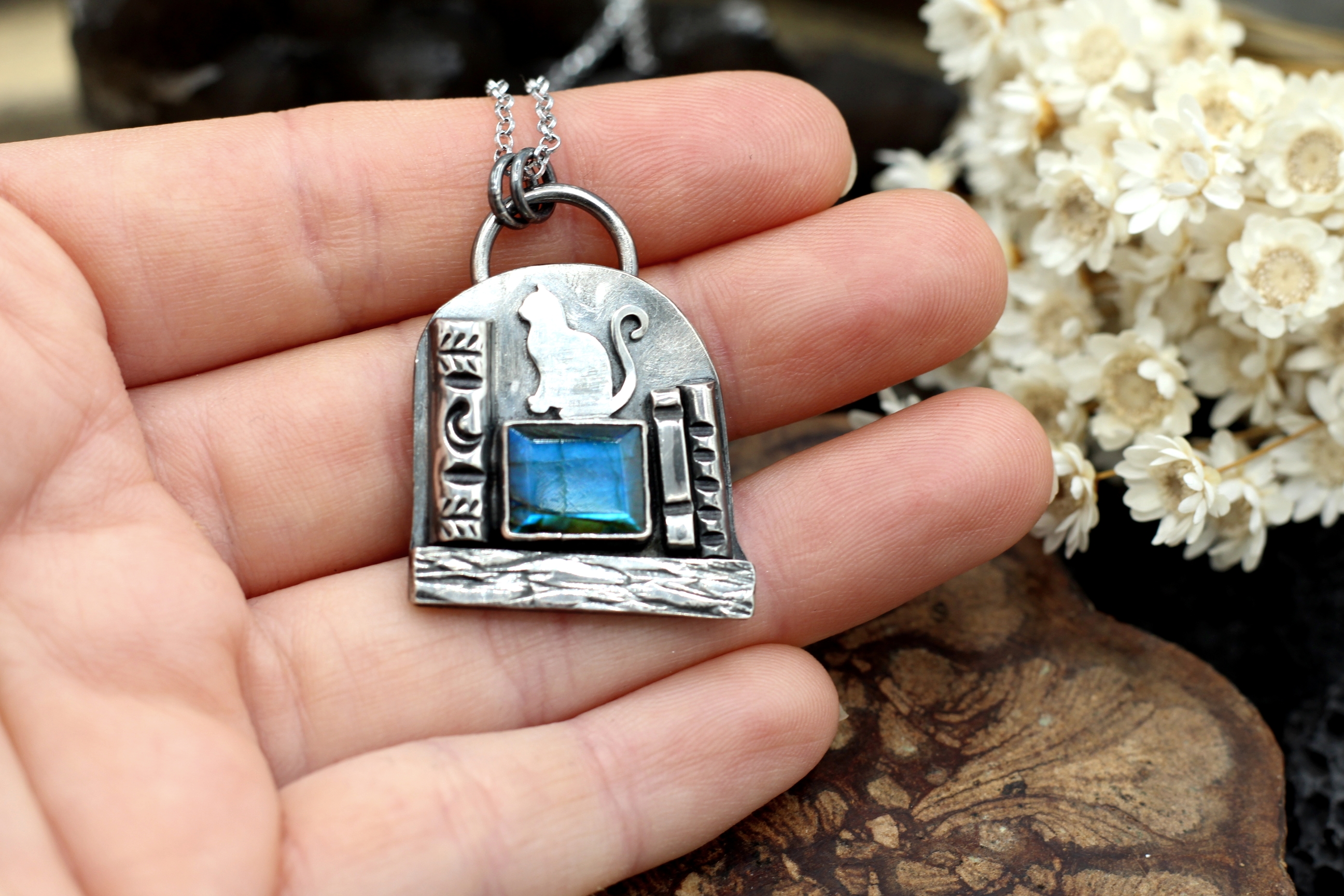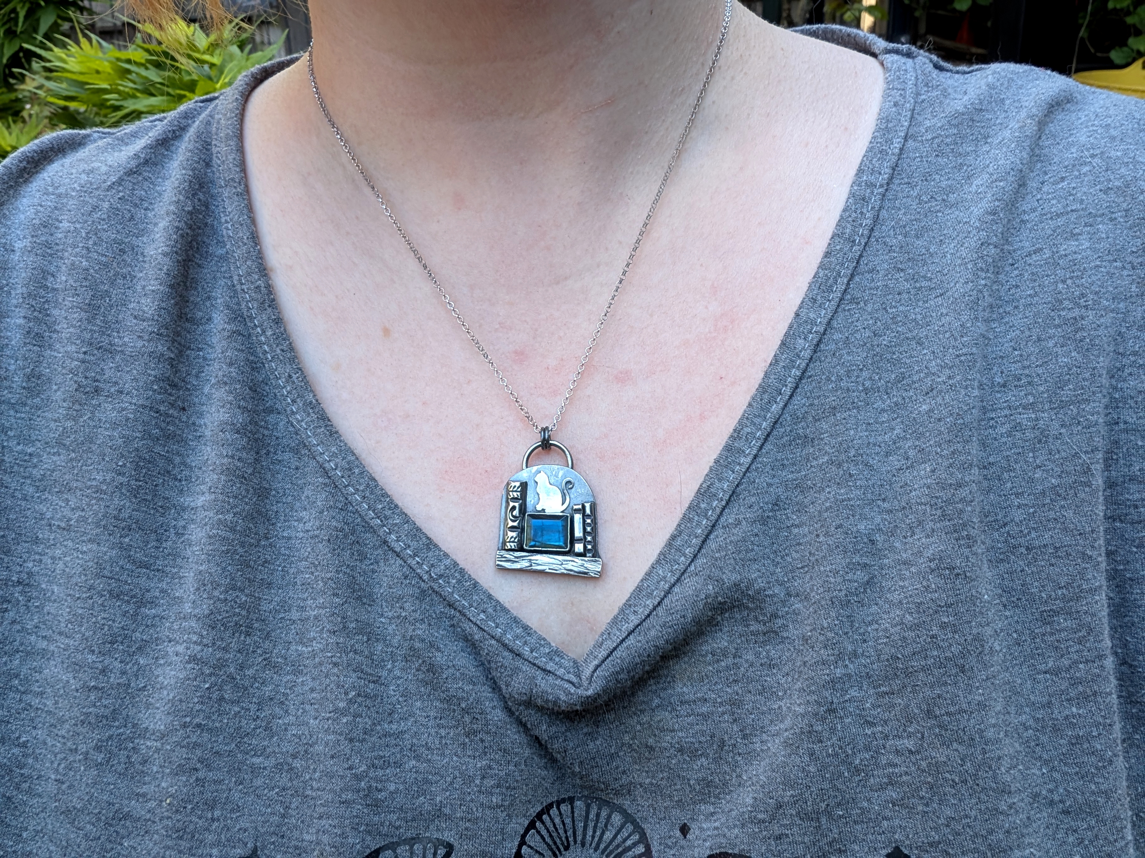 Die Kette ist ca. 50 cm lang zzgl. 5 cm Verlängerung. Man kann sie austauschen. Sag mir einfach Bescheid, wenn du eine kürzere haben möchtest.