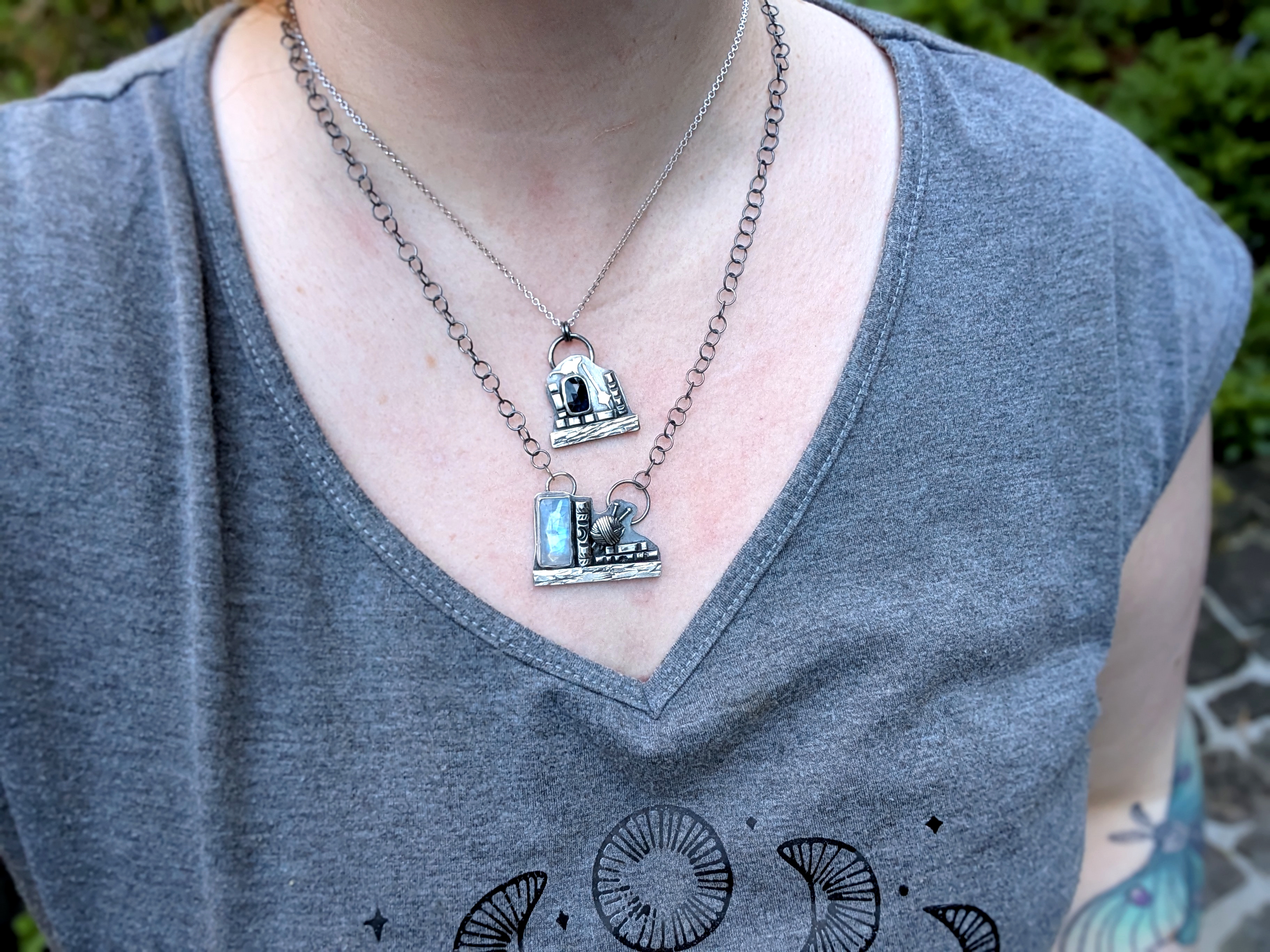 Die Kette ist ca. 50 cm lang zzgl. 5 cm Verlängerung. Man kann sie austauschen. Sag mir einfach Bescheid, wenn du eine kürzere haben möchtest.