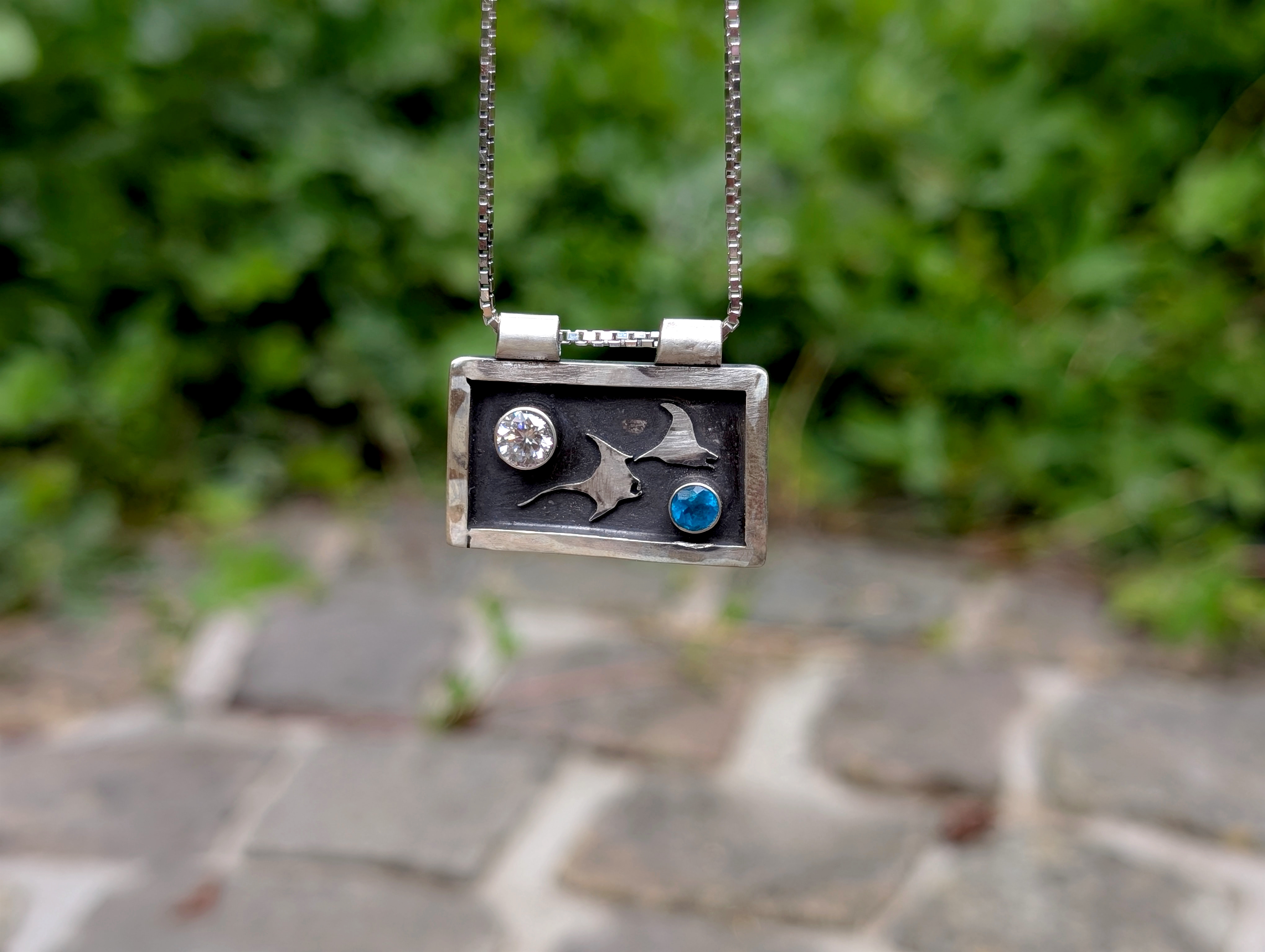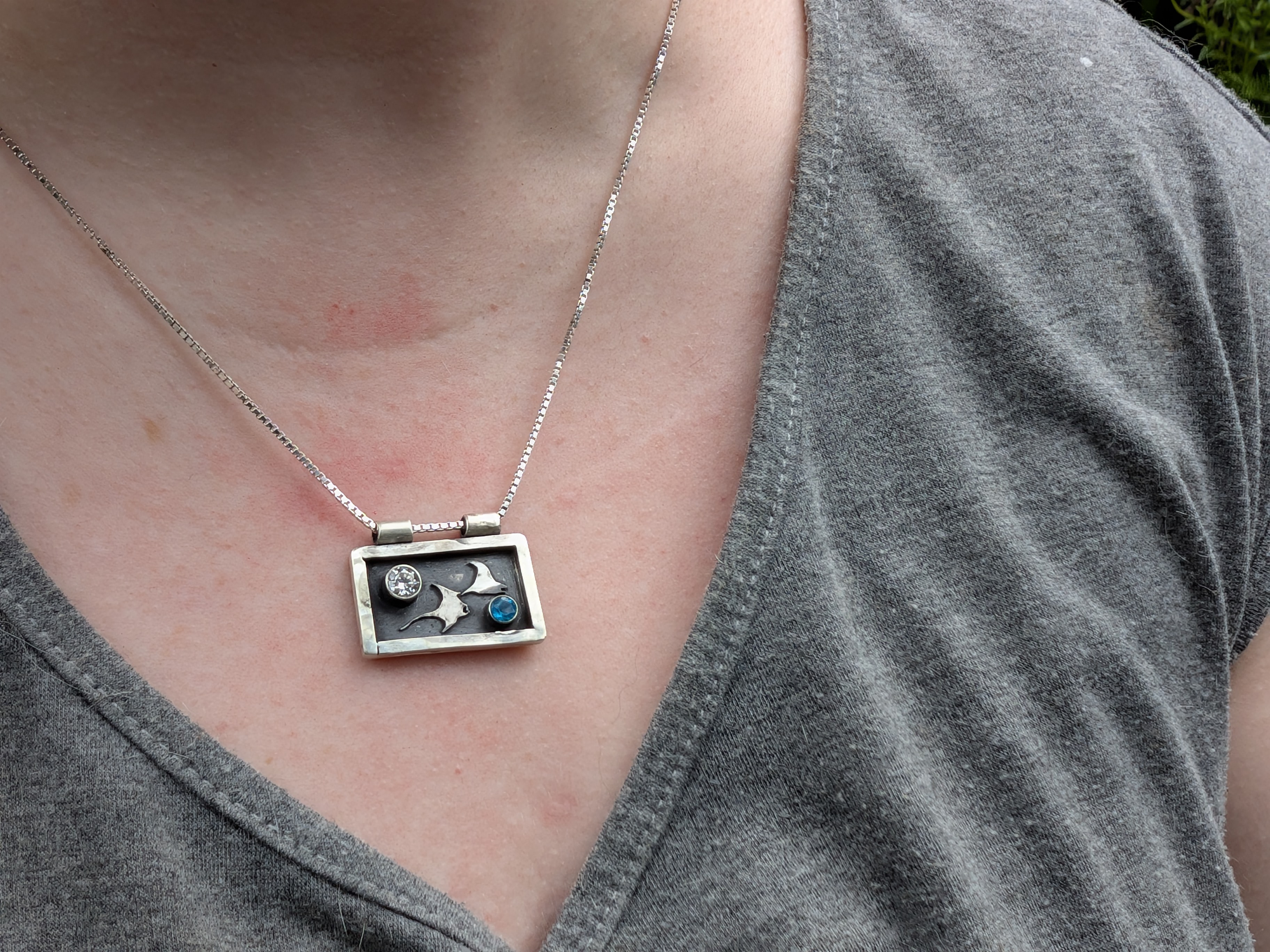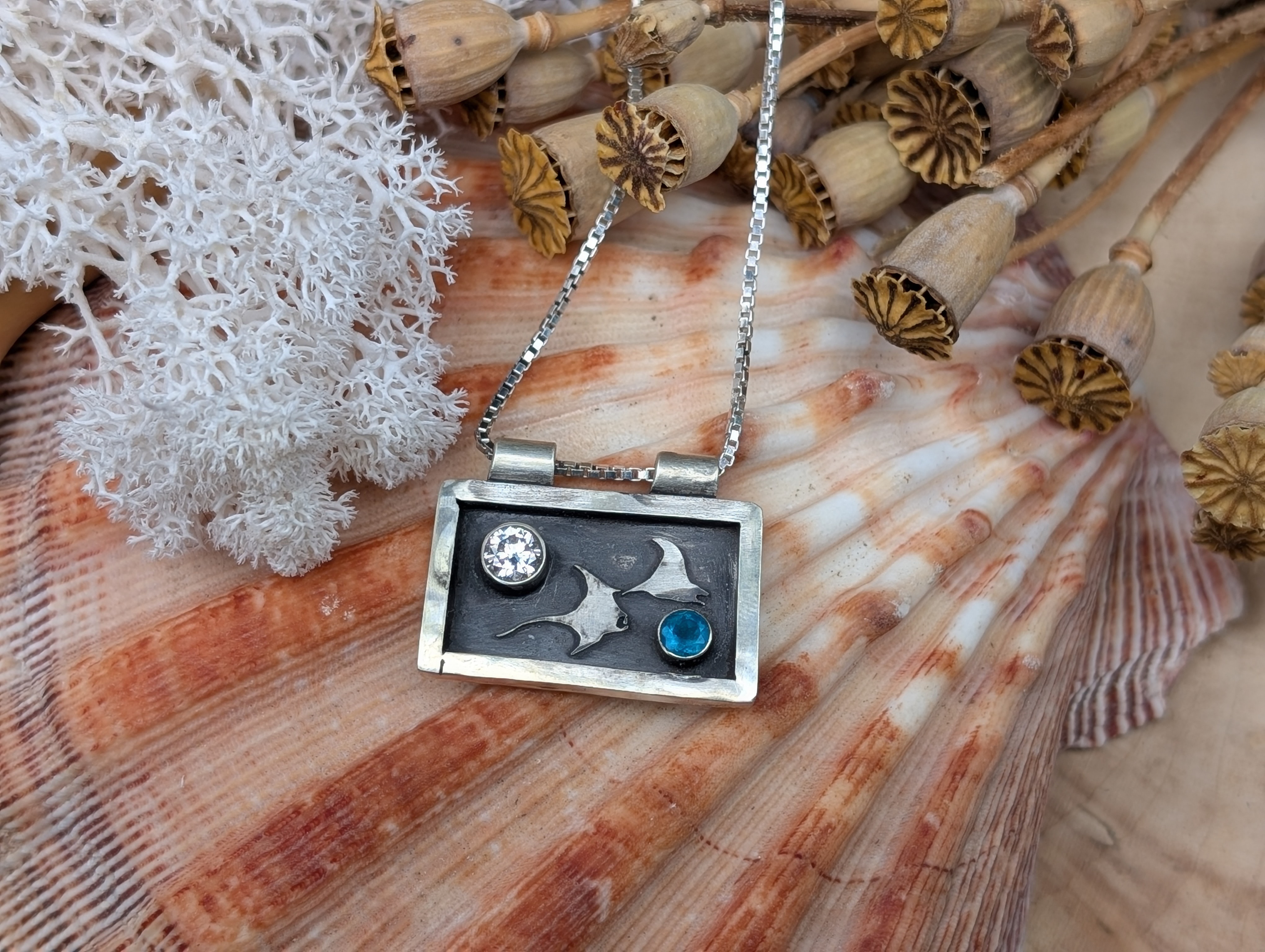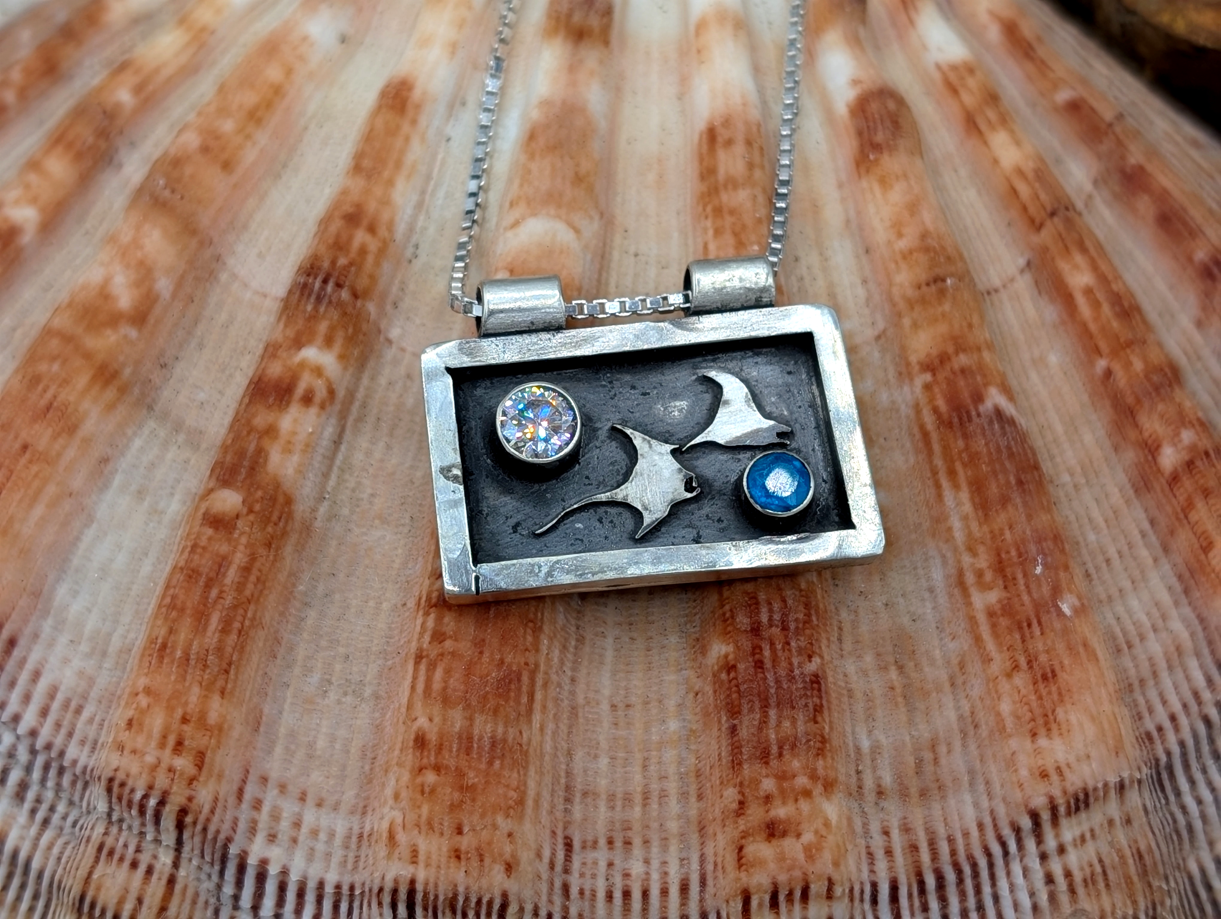 Halskette aus Sterlingsilber mit Moissanit und Neon Apatit
