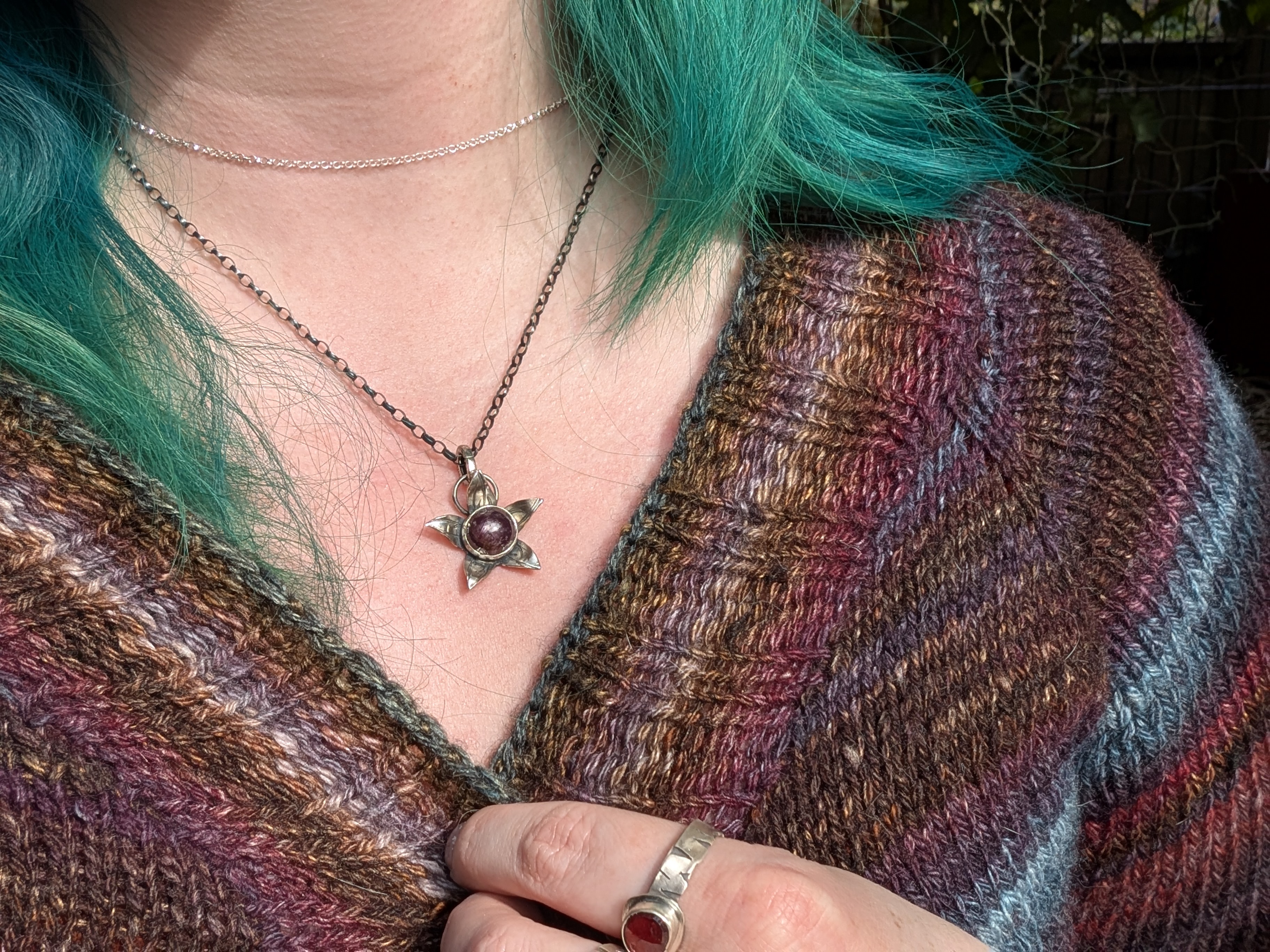 Mit oder ohne Kette. Die Kette ist handgemacht, oxidiert und ca. 45 cm lang.