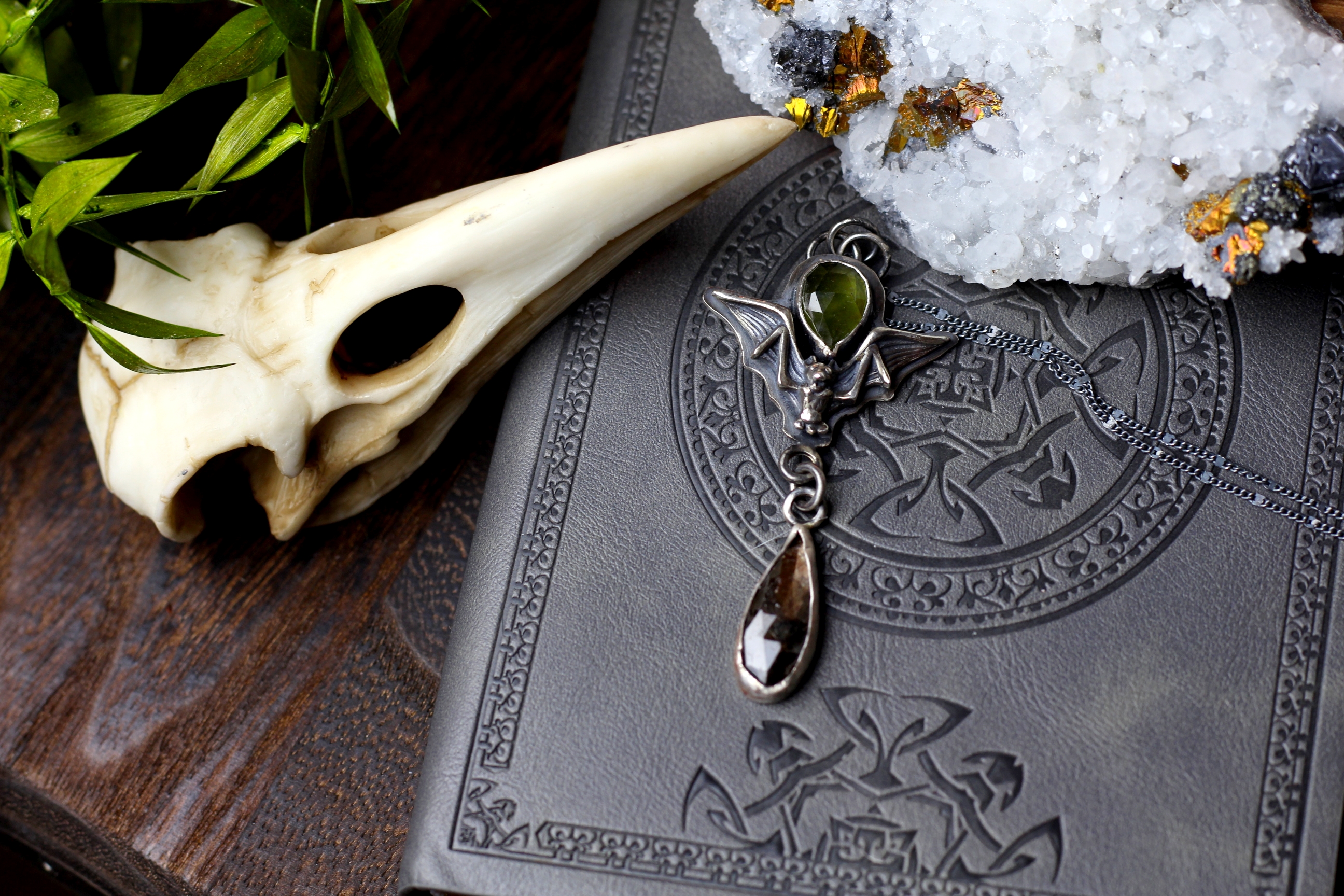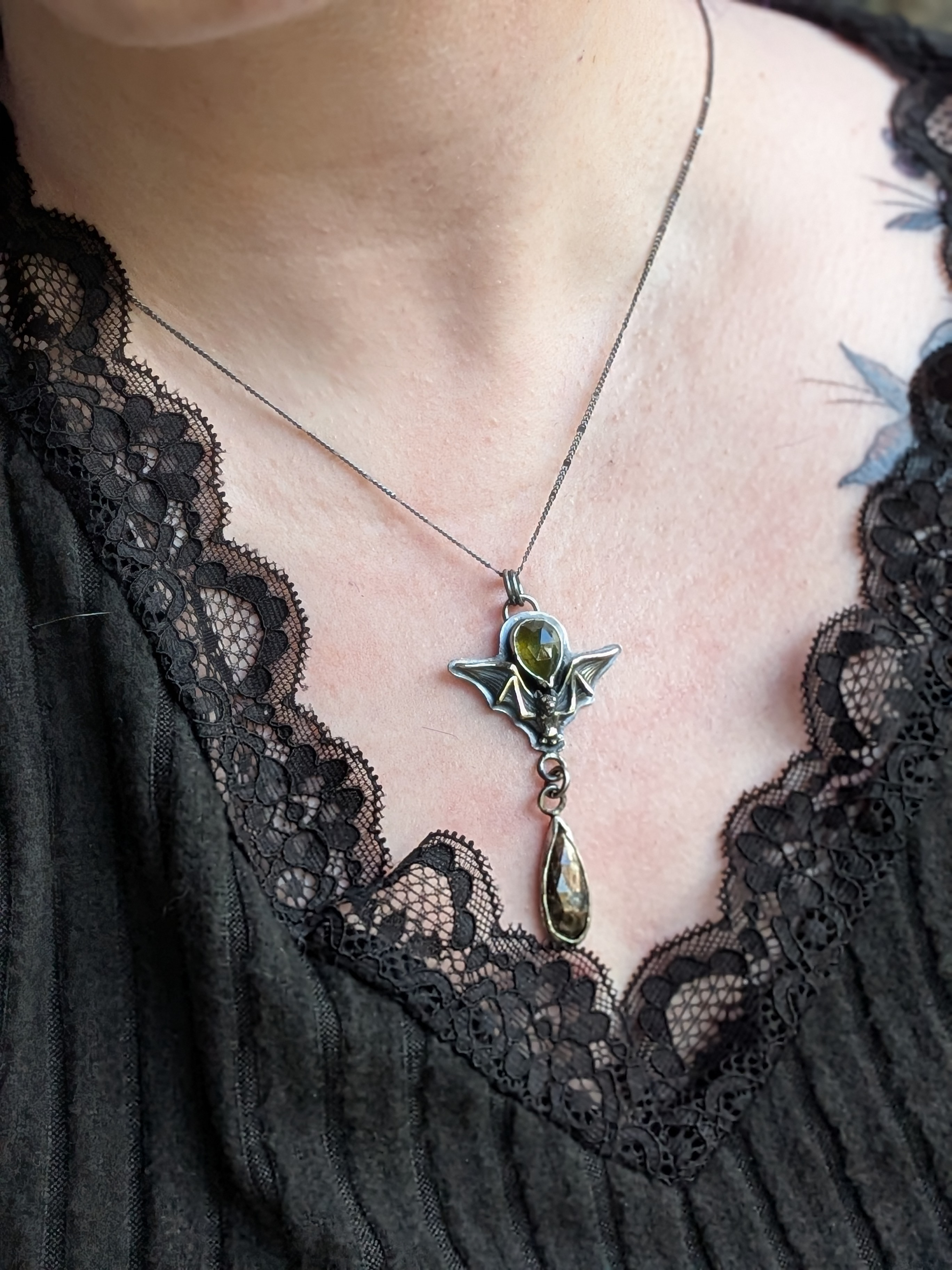 Halskette aus Sterlingsilber mit Vesuvianit und Saphir