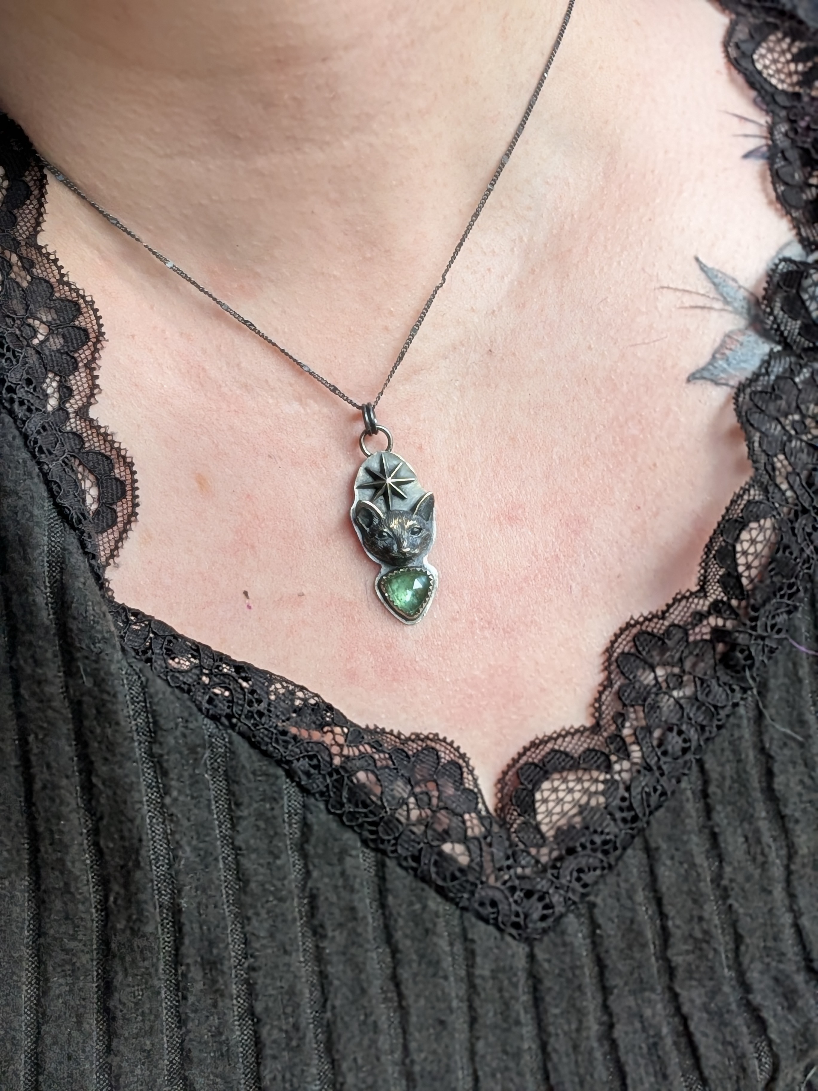 Die beiliegende Kette ist ca. 50 cm lang und kann auf Wunsch gegen eine kürzere ausgetauscht werden.