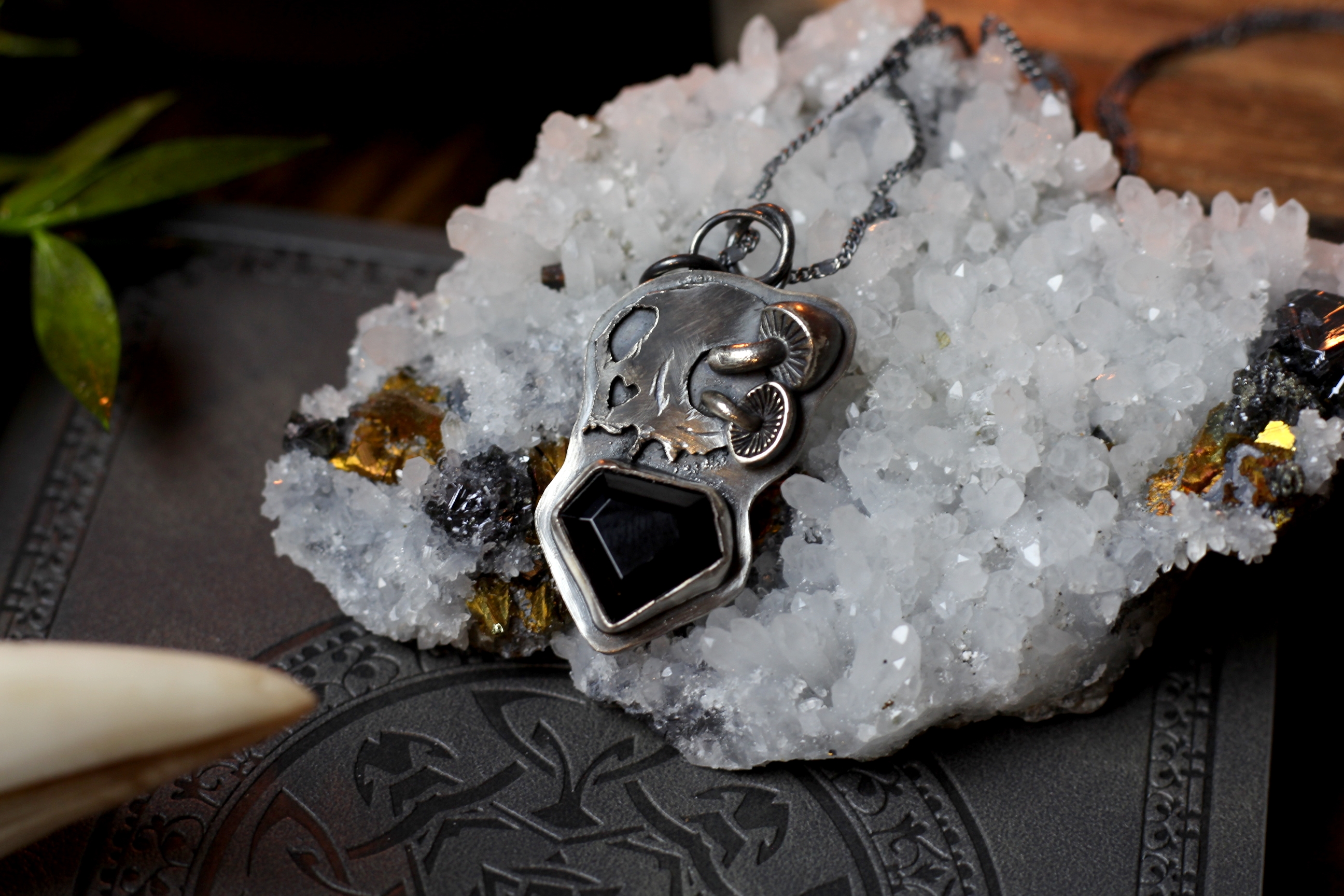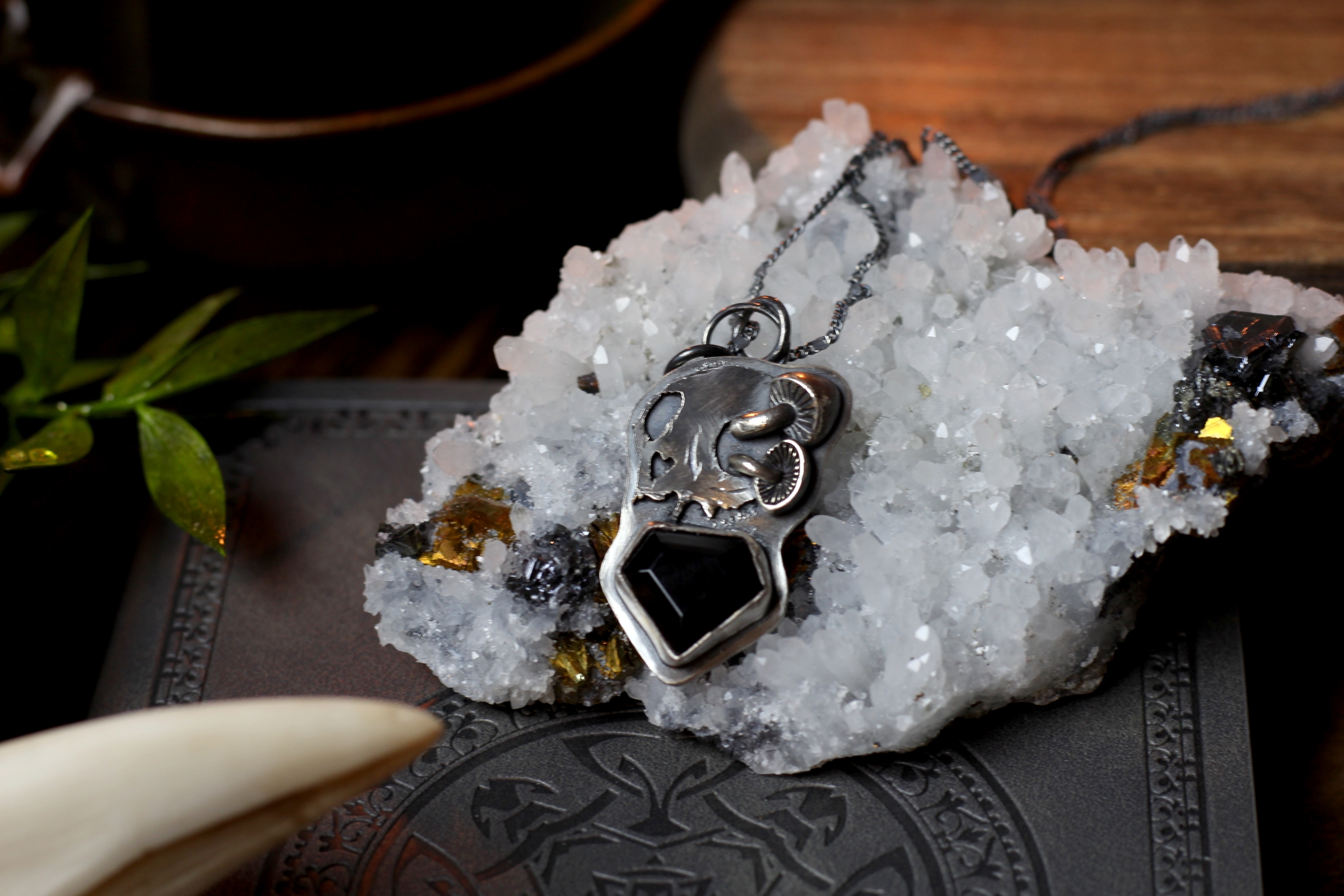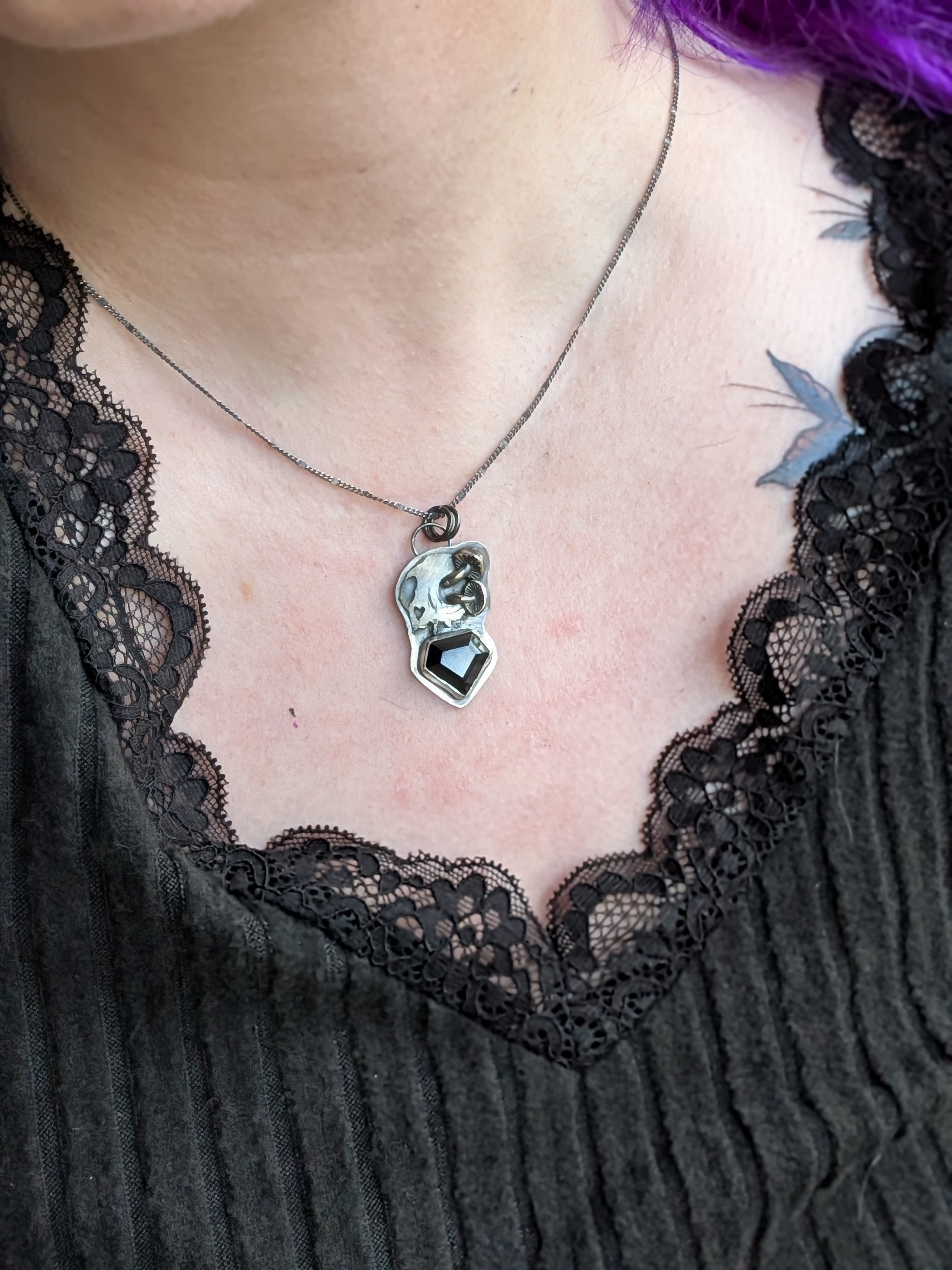 Ein Katzenschädel aus 925er Sterlingsilber mit schwarzem Spinell.
