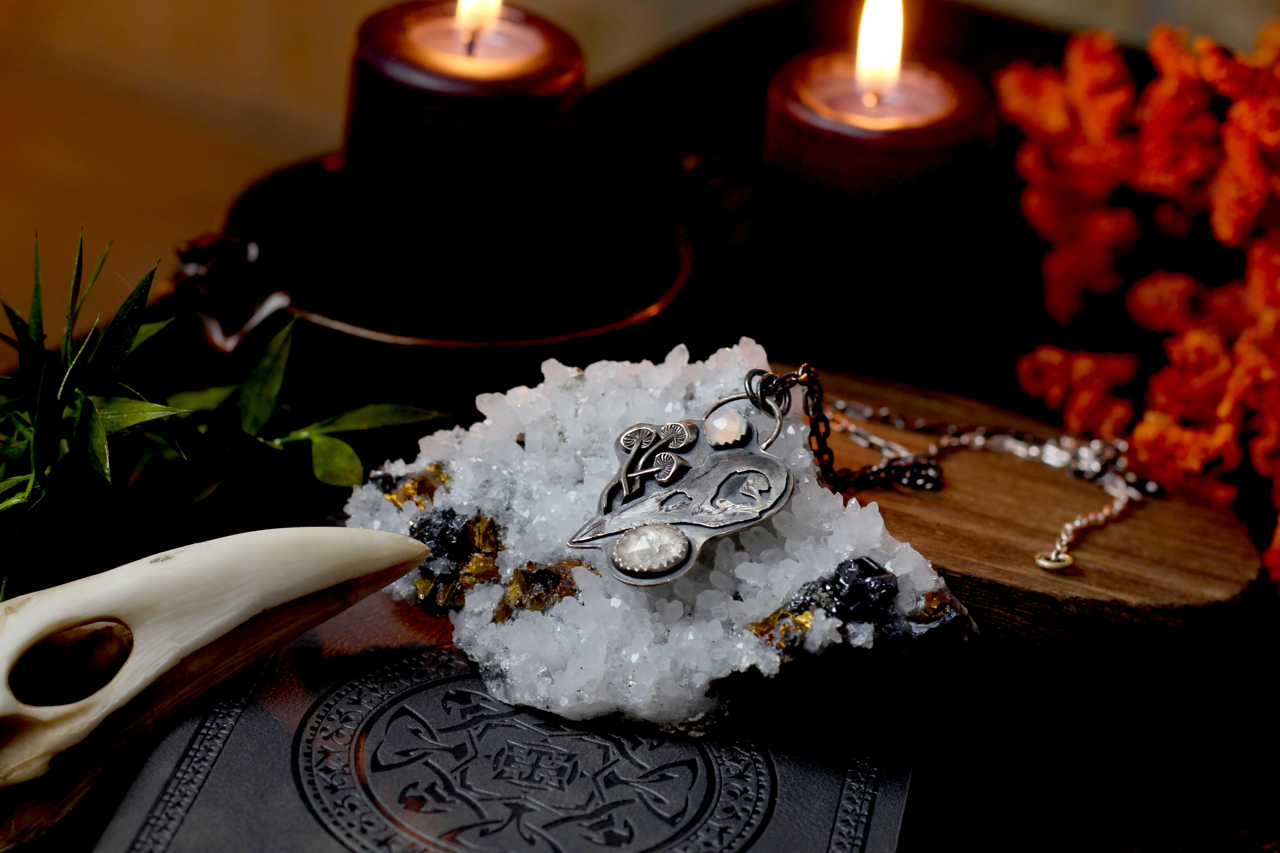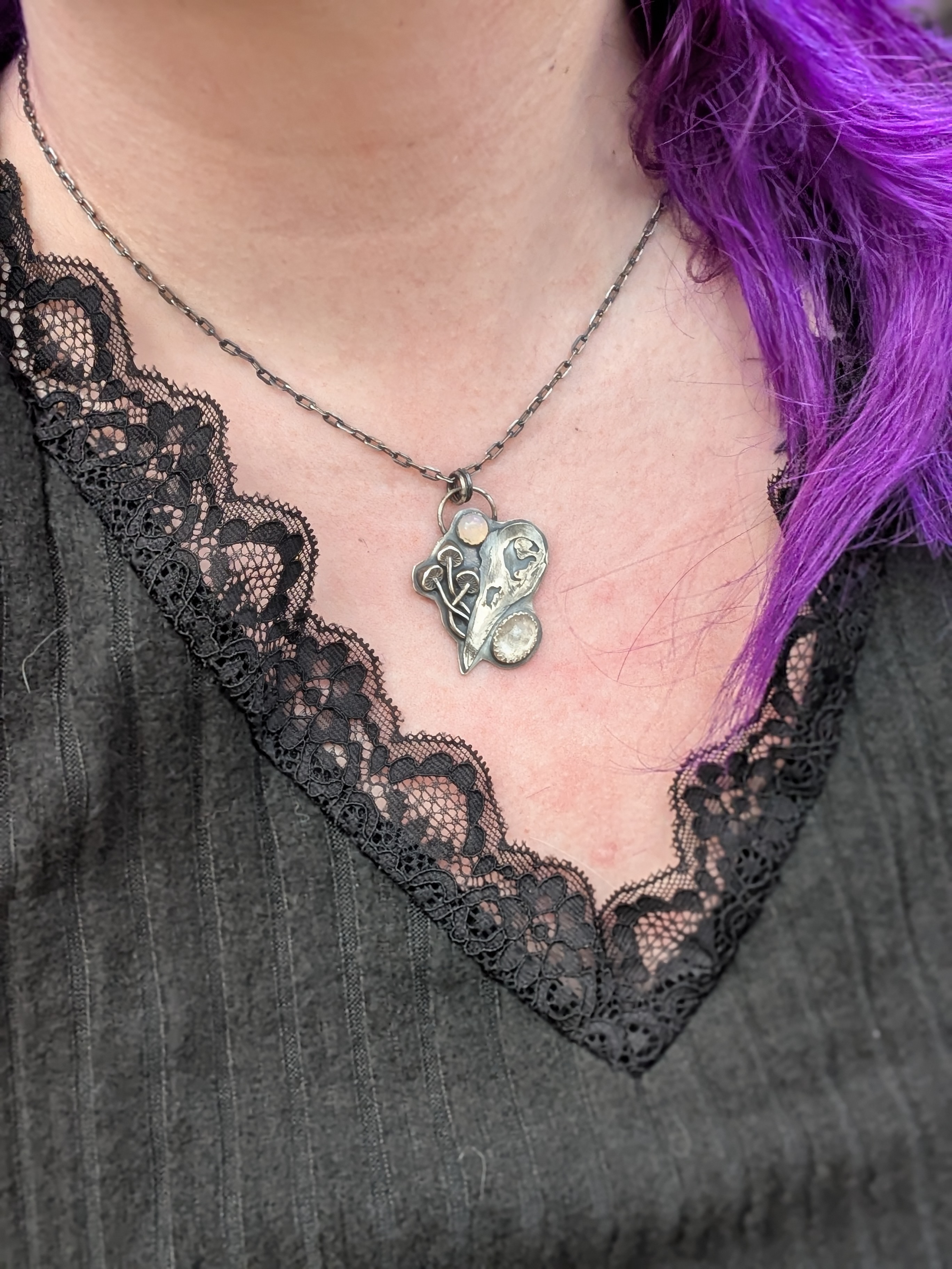 Rabenschädel aus 925er Sterlingsilber mit Herkimer Diamant und äthiopischem Opal.
