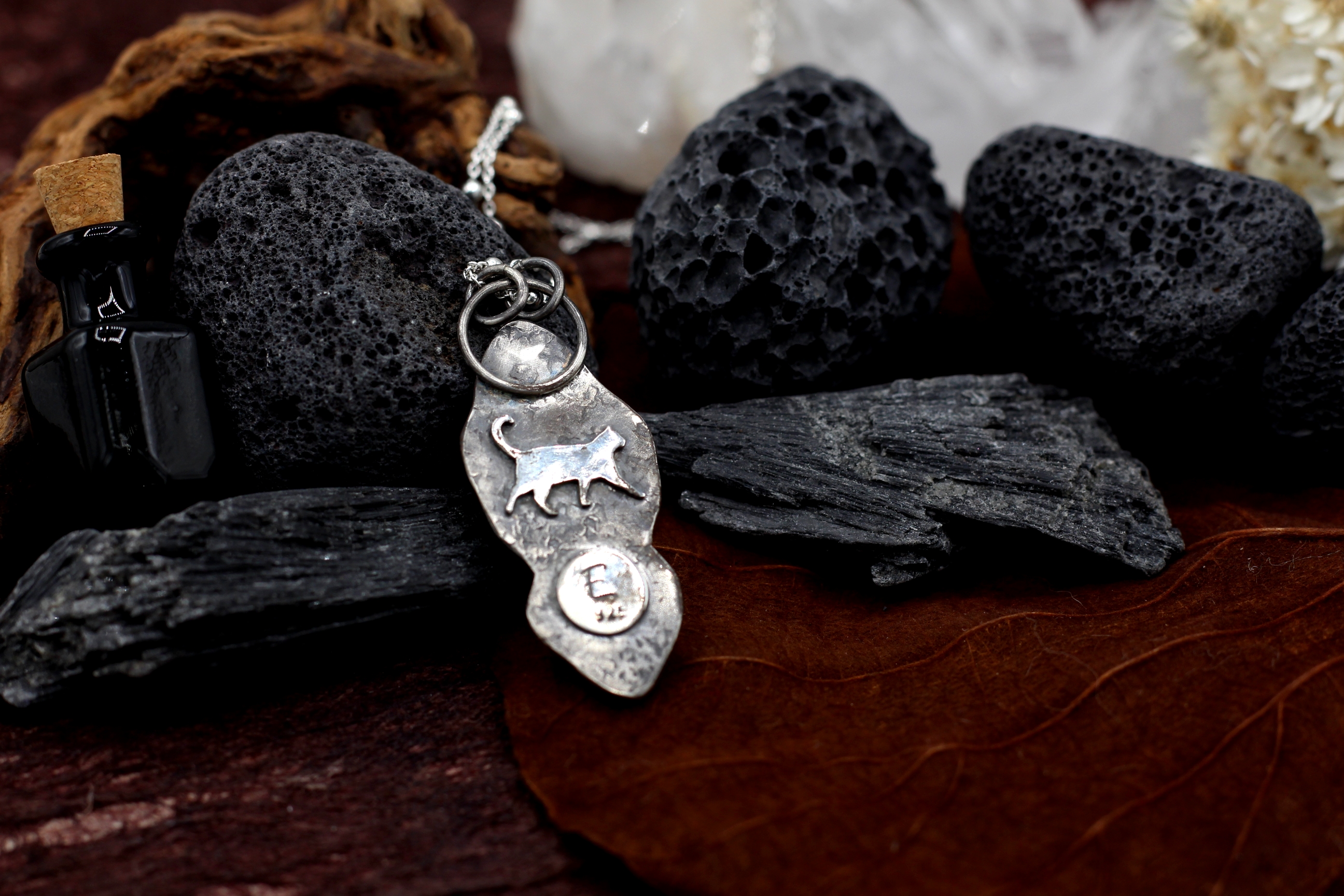 Wenn du keinen anderen Wunsch äußerst, kommt der Anhänger an einer Bambus-Kette aus Sterlingsilber mit 50 cm Länge. Auf dem letzten Bild siehst du aber auch ein paar Alternativen, falls du andere Kettenglieder oder eine andere Länge bevorzugst.