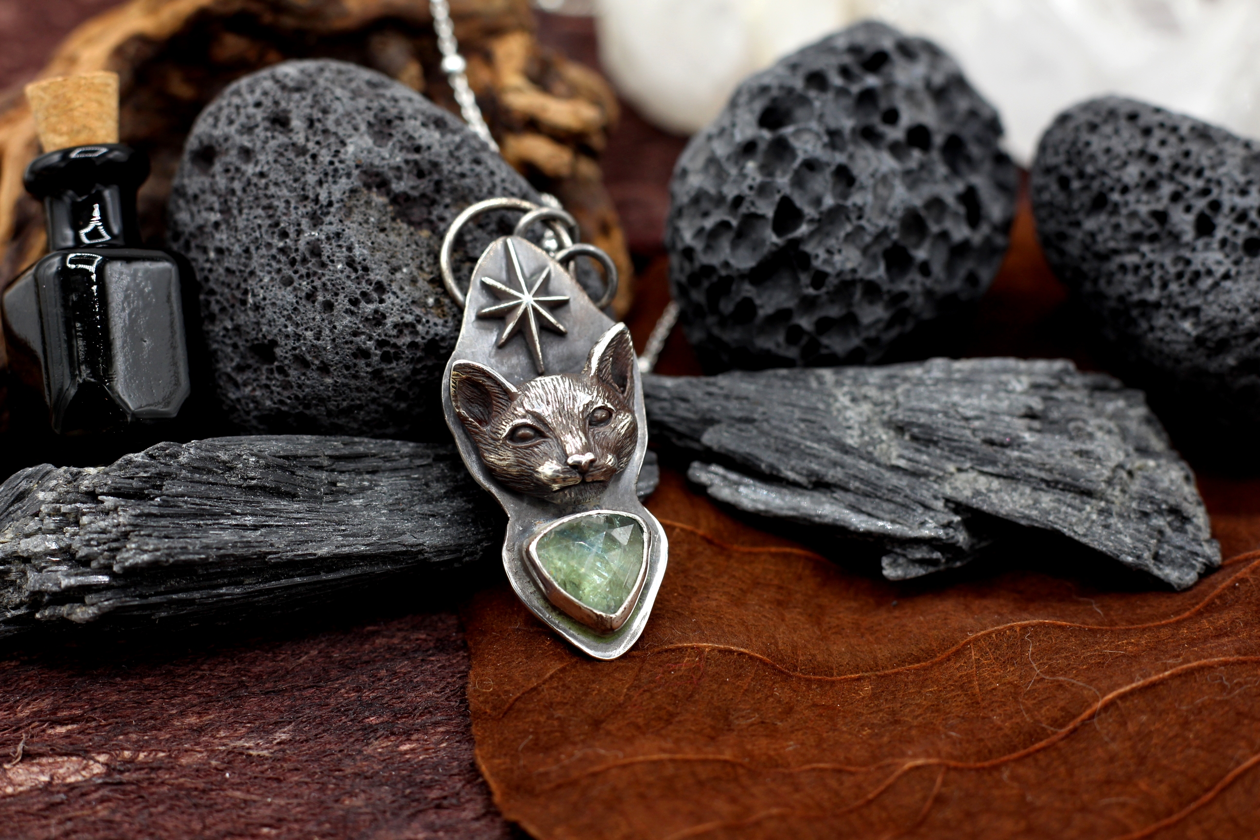 925er Sterlingsilber mit grünem Kyanit.