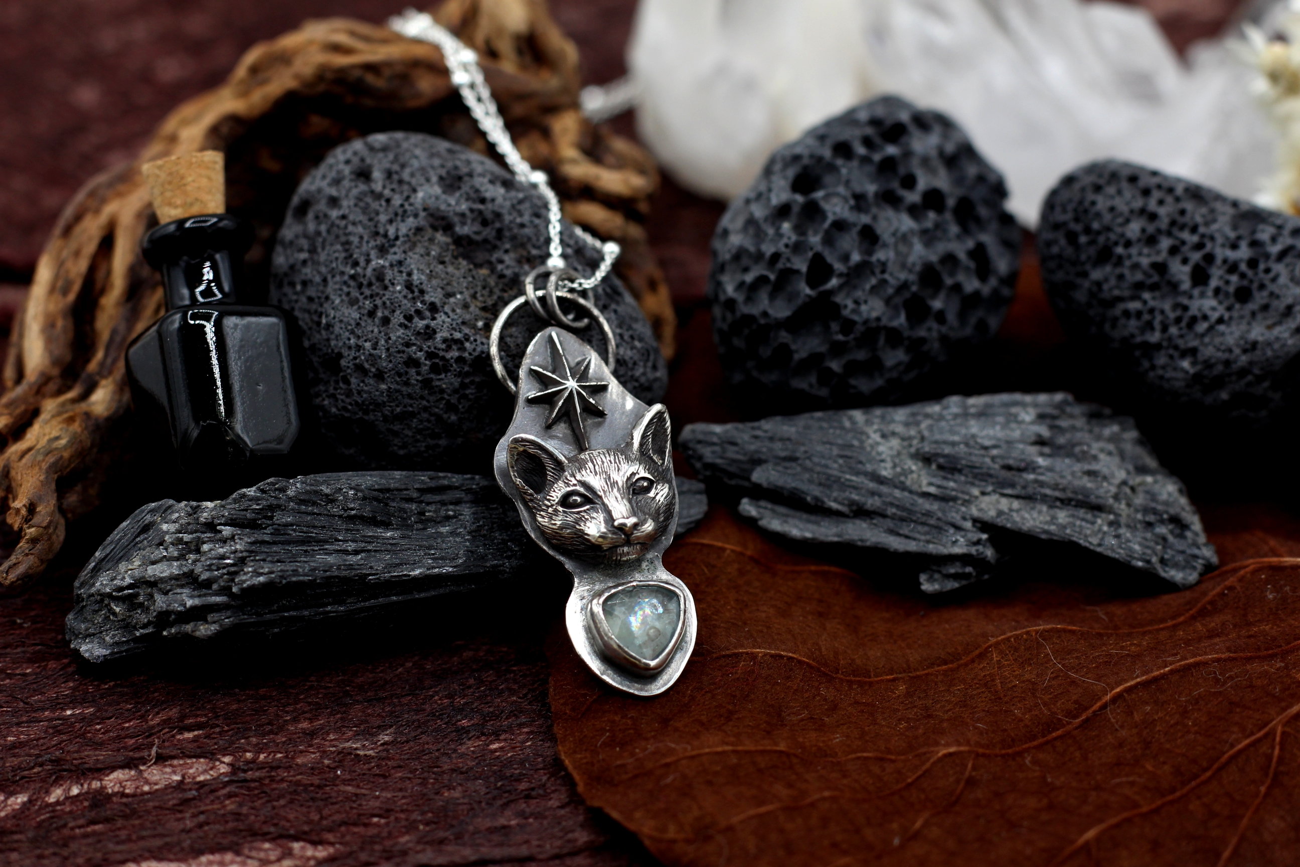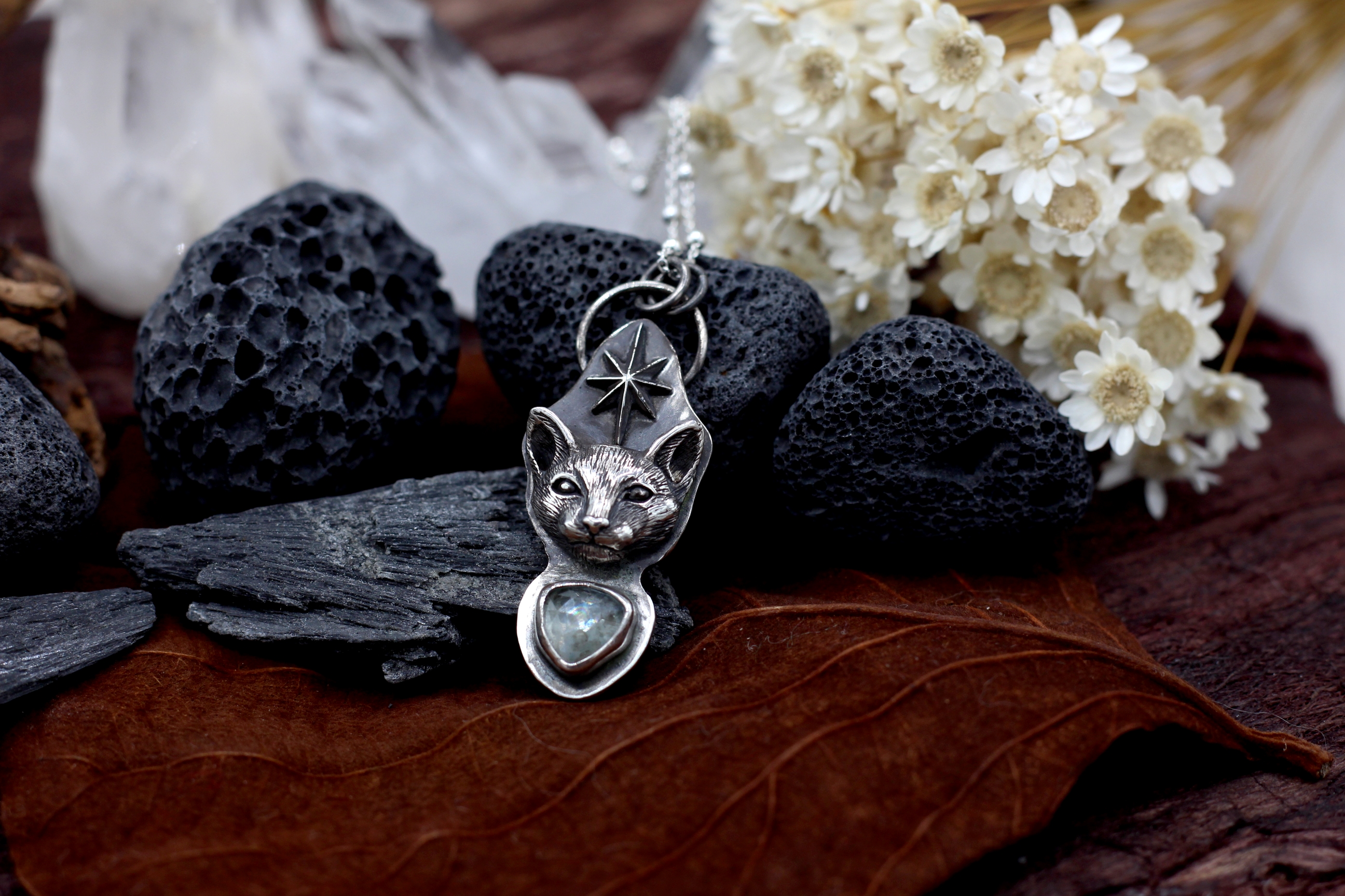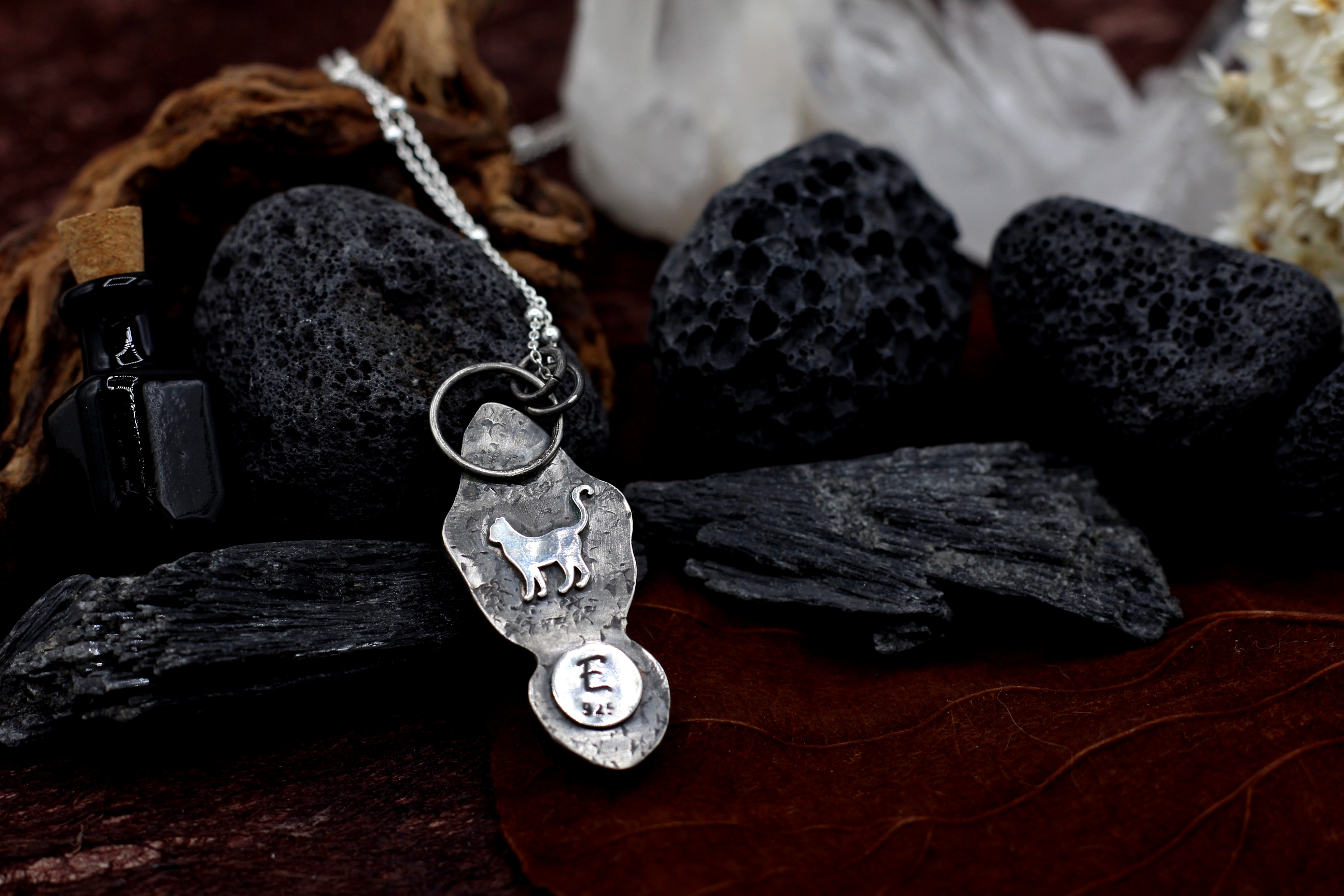 Wenn du keinen anderen Wunsch äußerst, kommt der Anhänger an einer Bambus-Kette aus Sterlingsilber mit 50 cm Länge. Auf dem letzten Bild siehst du aber auch ein paar Alternativen, falls du andere Kettenglieder oder eine andere Länge bevorzugst.