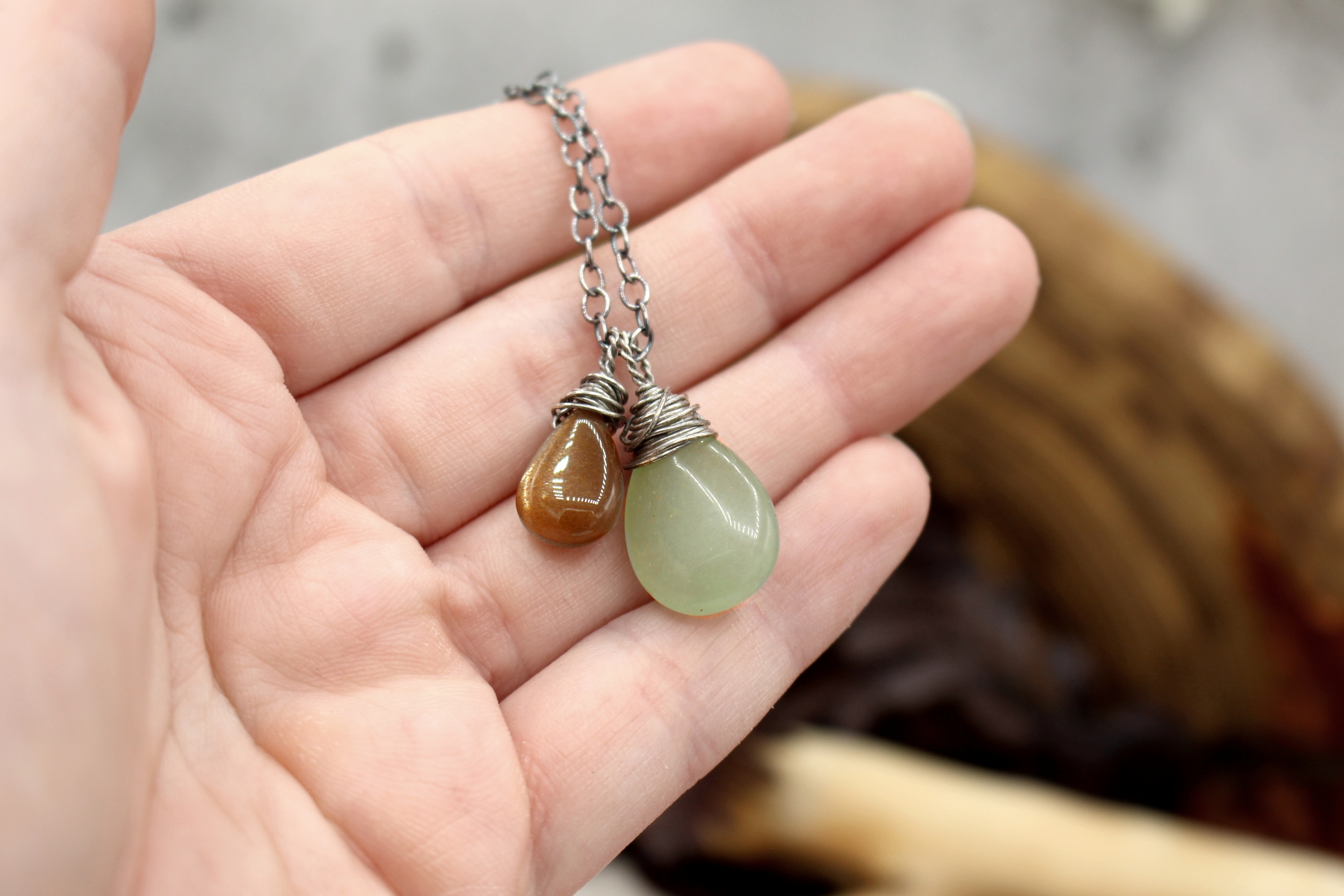 925er Sterlingsilber, Aventurin, brauner Mondstein.
