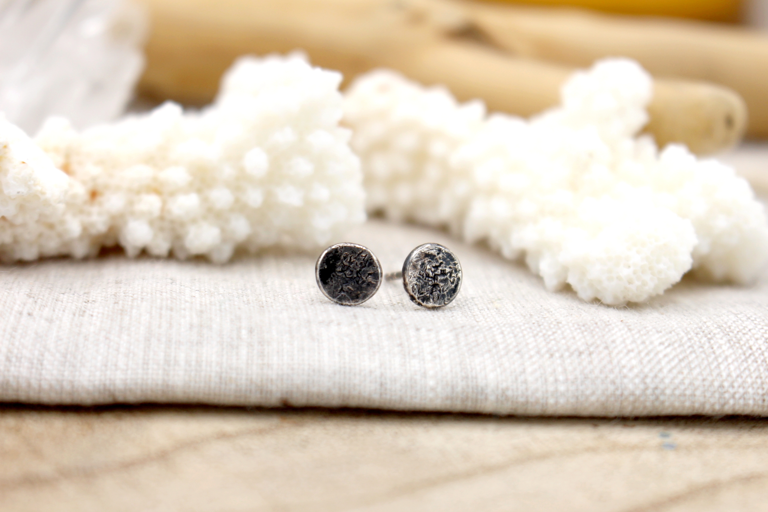 Winzige, handgeschmiedete und unregelmäßige Ohrstecker aus