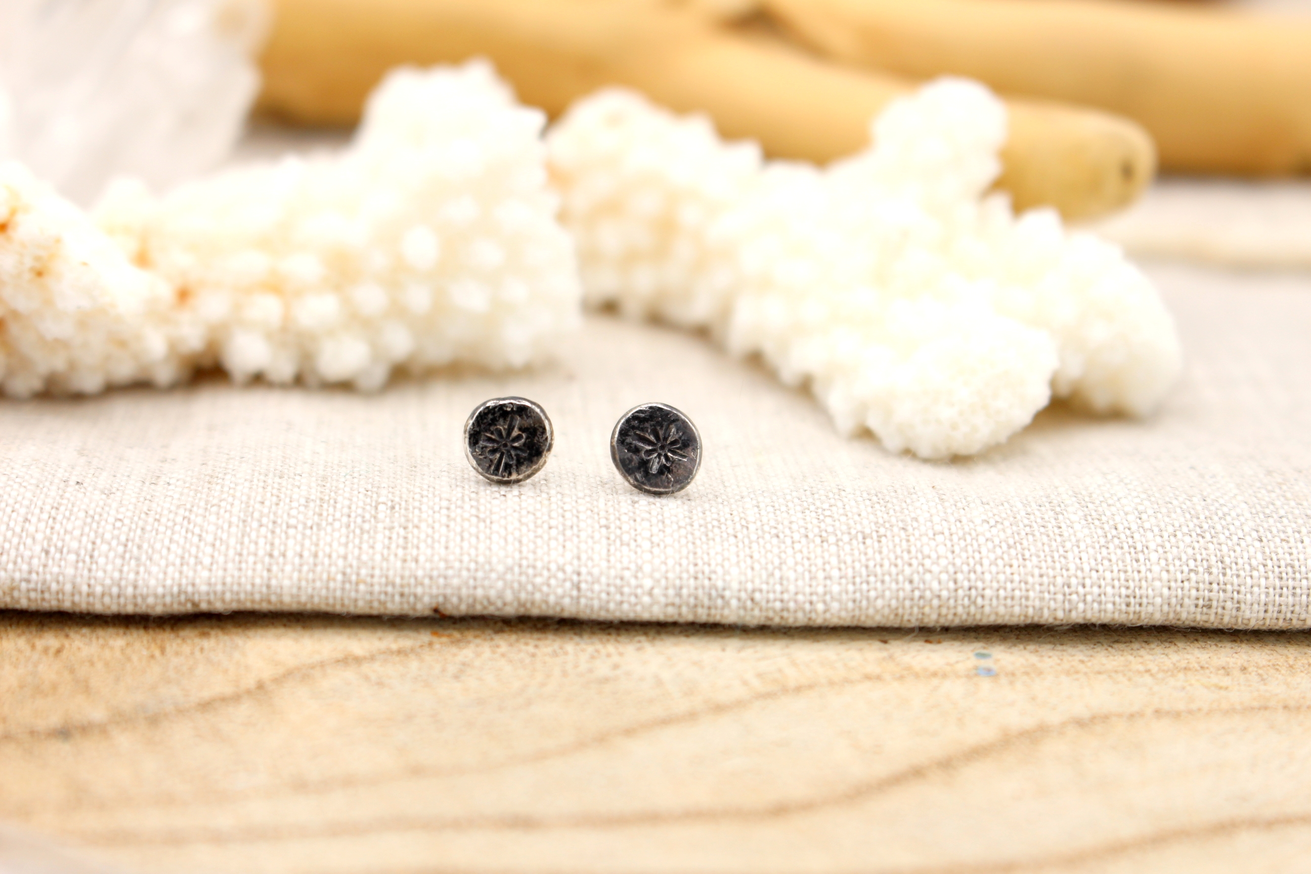 Winzige, handgeschmiedete und unregelmäßige Ohrstecker aus 925er Sterlingsilber.