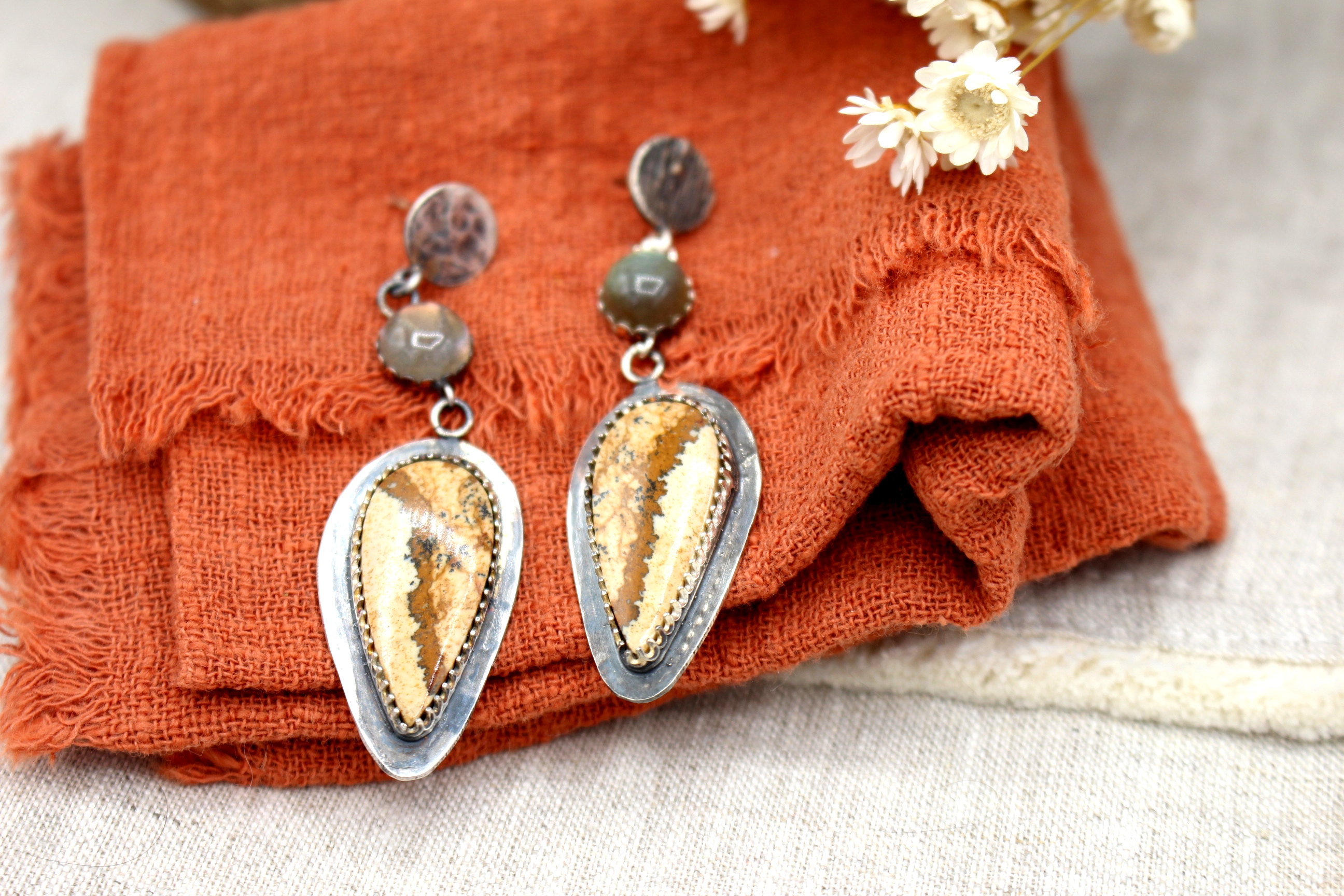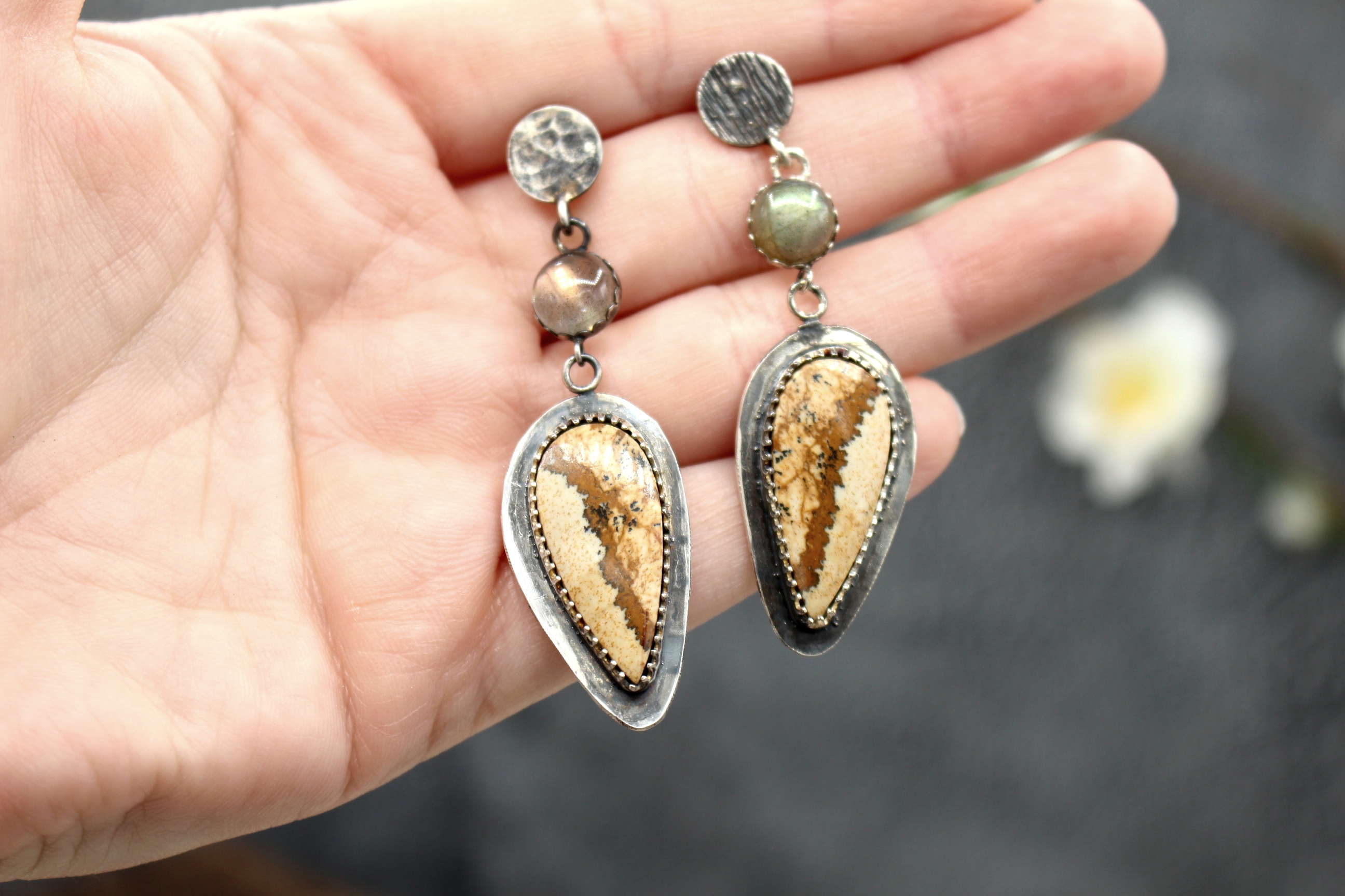 925er Sterlingsilber, Bilderjaspis und Labradorit.