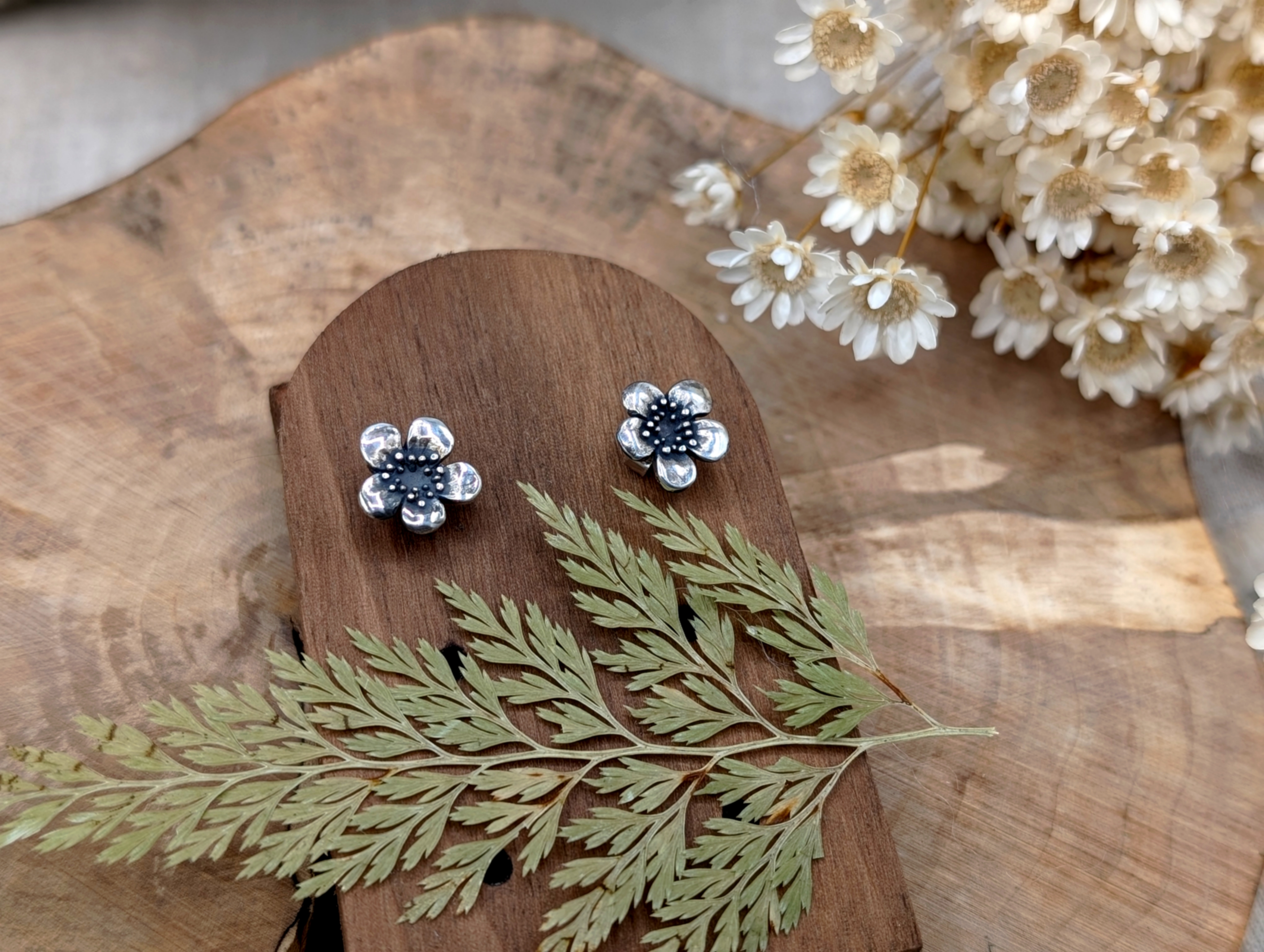 Die Ohrstecker können einzeln oder mit den Edelsteinen getragen werden. Die Länge mit Edelsteinkettchen beträgt ca. 2,5 cm.