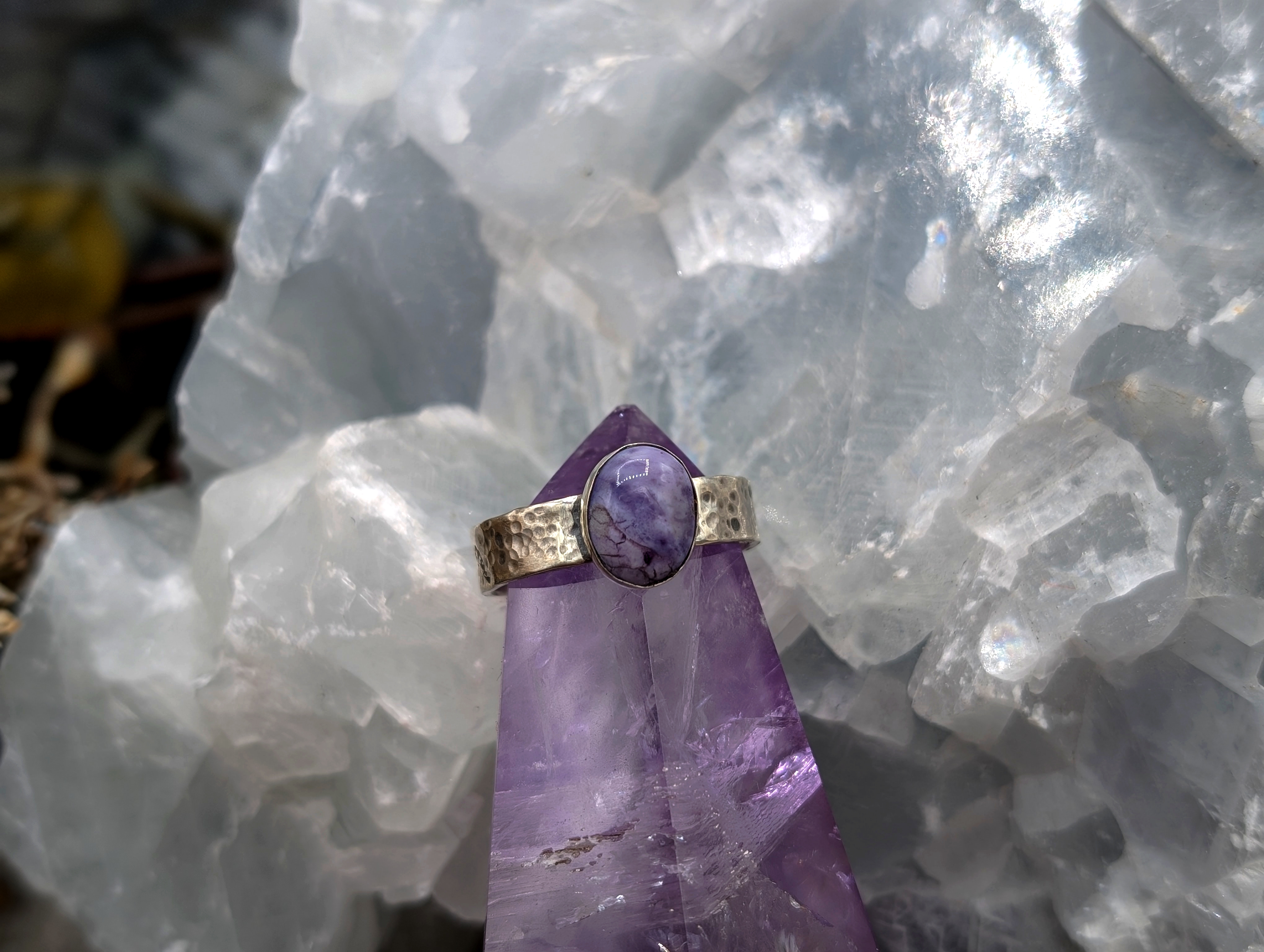 Tiffany Stone ist ein seltenes Mineraliengemisch aus Fluorit, Opal und Jaspis. Ich habe ihn in Utah gekauft, wo er ethisch geschürft und geschliffen wird.