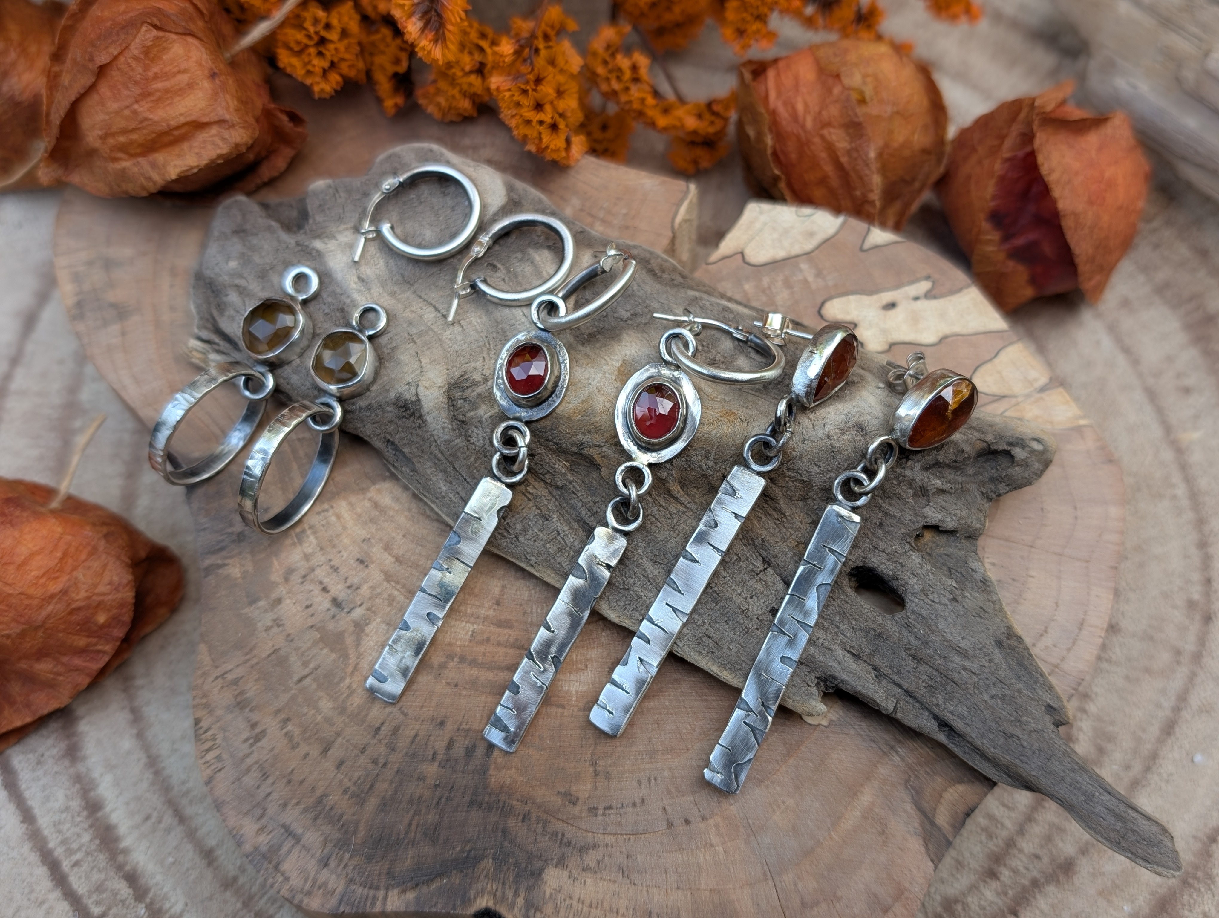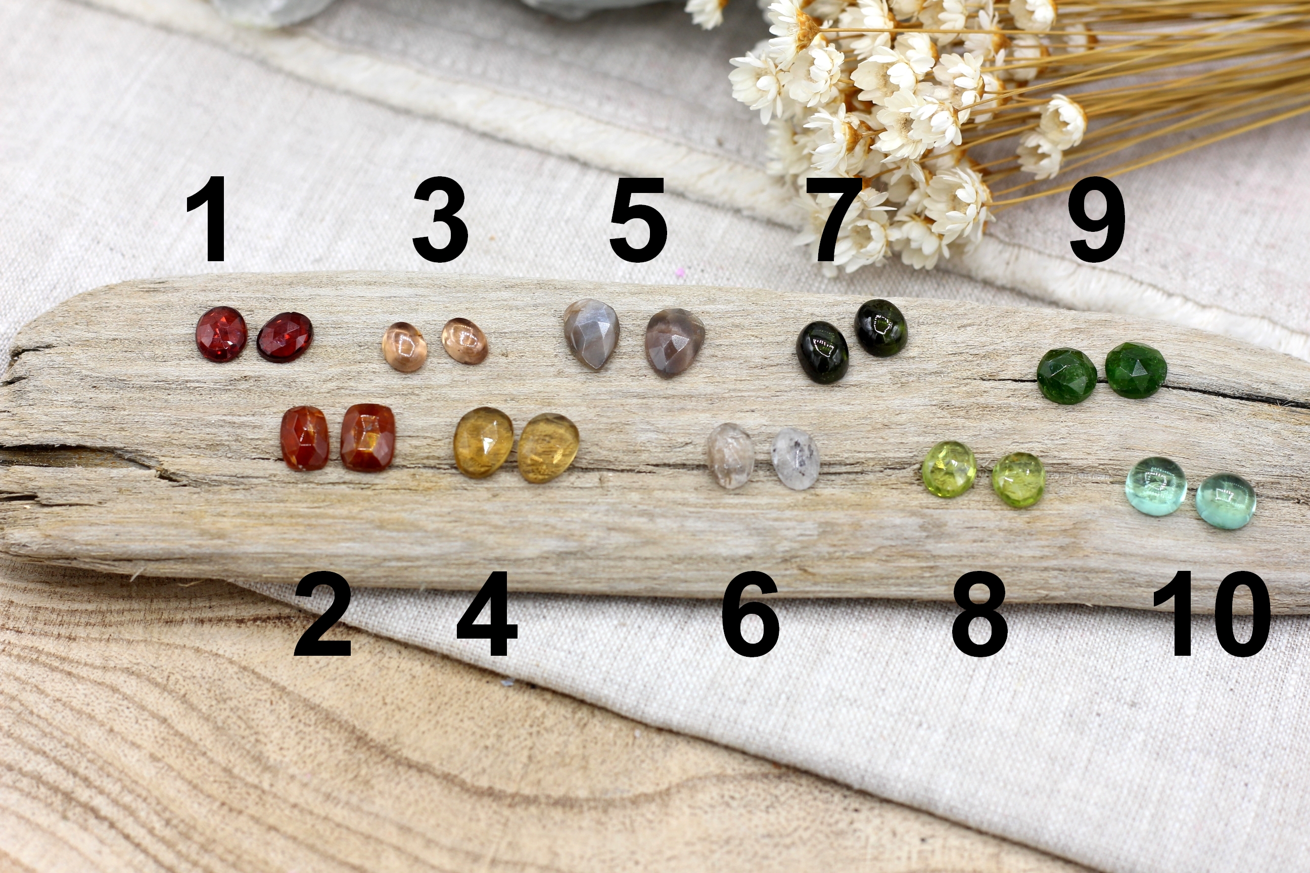 Ich habe für meine Kollektion verschiedenen Steine gesetzt, um sie gut zu zeigen. Aber wenn Stücke kombinieren möchtest und dabei eine Steinsorte magst, schmiede ich für dich. Auf dem letzten Bild siehst du eine Auswahl an Steinen, die gut zum Design passen und für alle Formen (Halskette, Ohrringe, Ringe, Armschmuck) vorhanden sind.