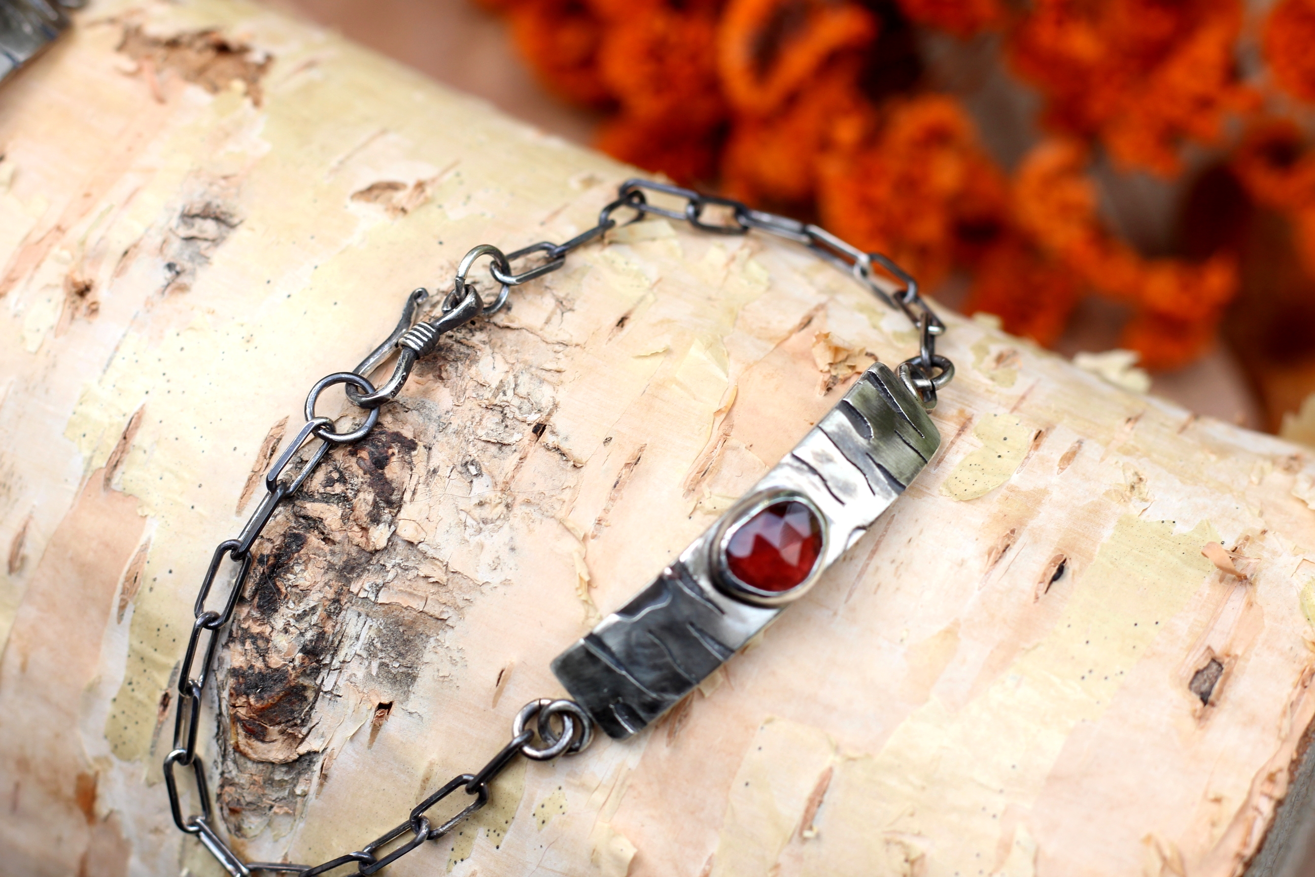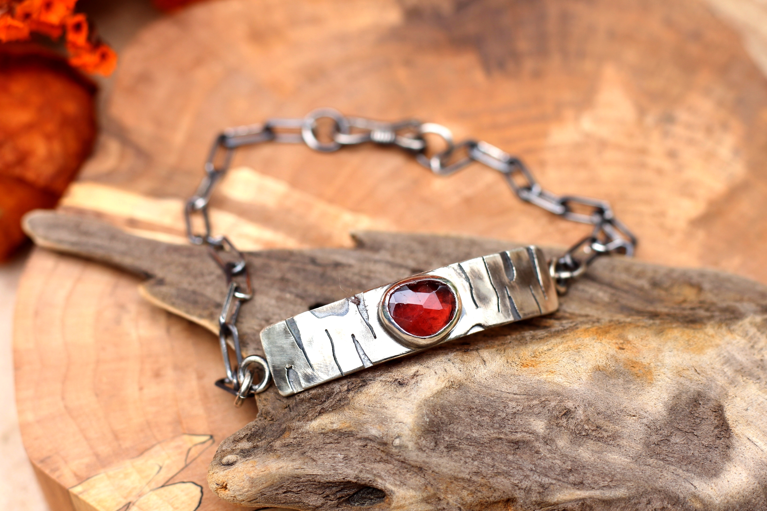 925er Sterlingsilber mit Granat höchster Qualität, geschnitten und poliert von Divya aus Indien.