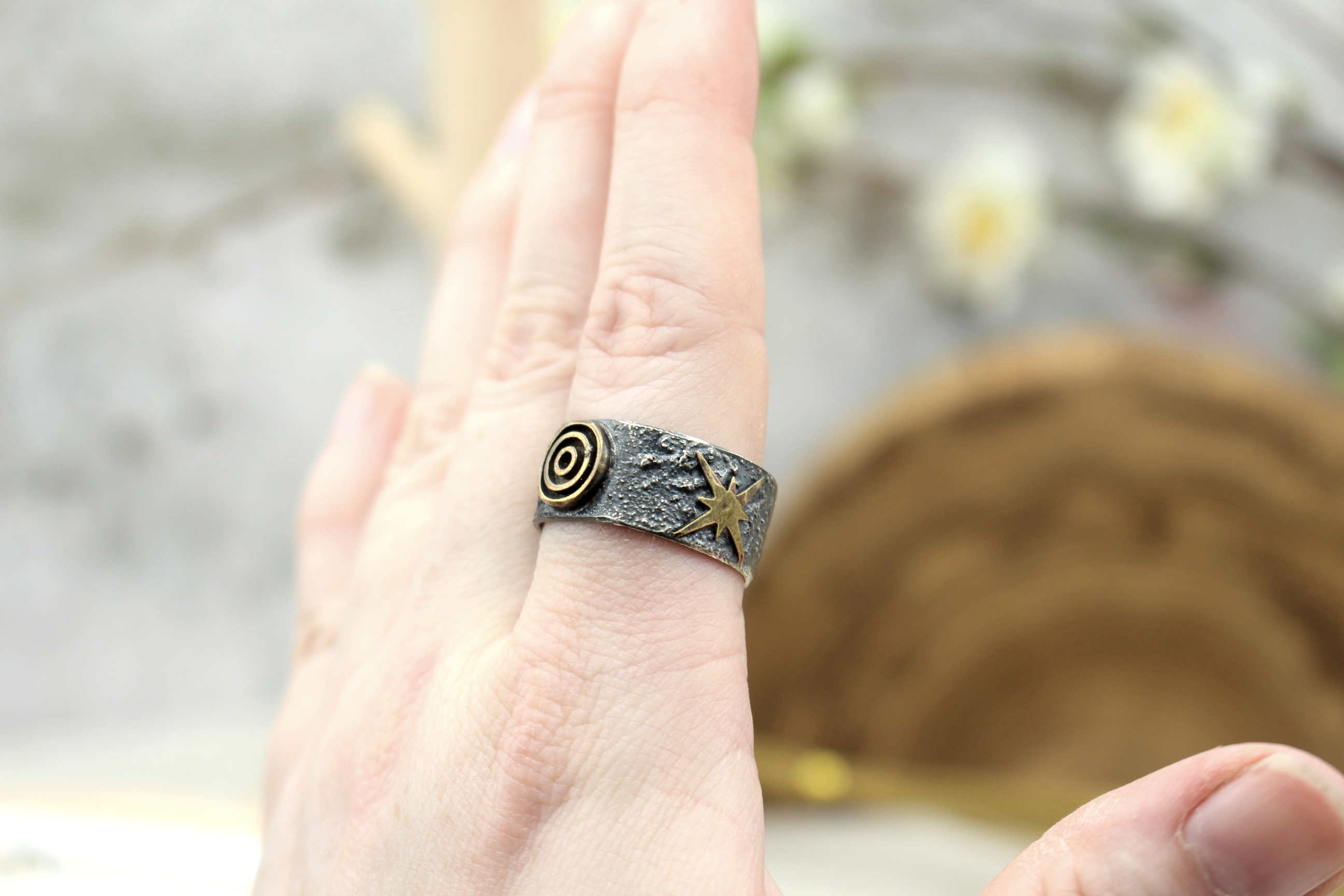 Ring Gr. 61 aus Sterlingsilber und Messing