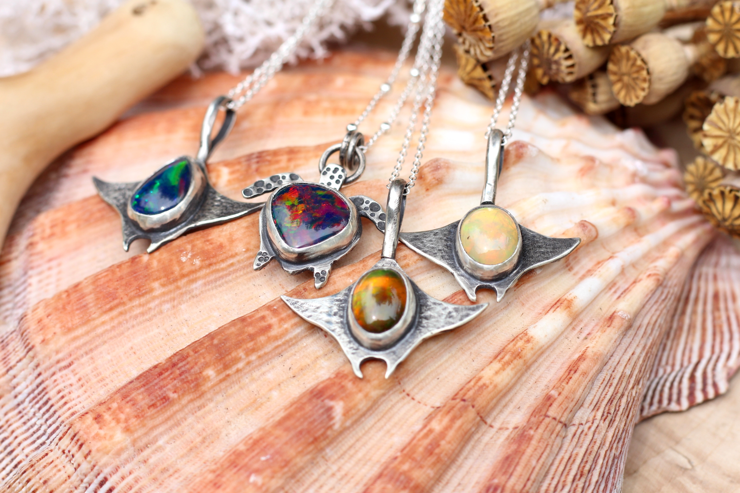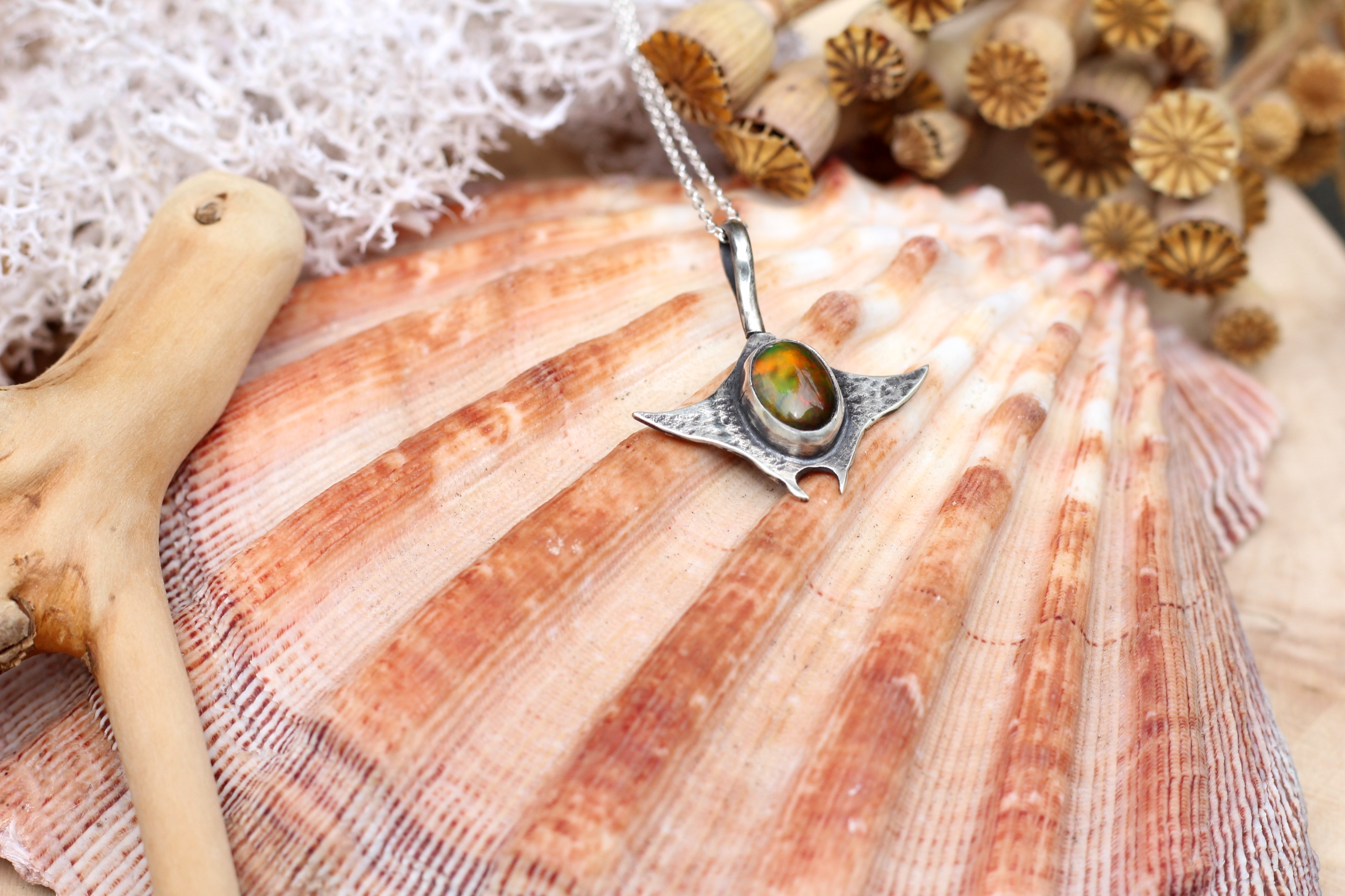 Halskette aus Sterlingsilber mit schwarzem Opal