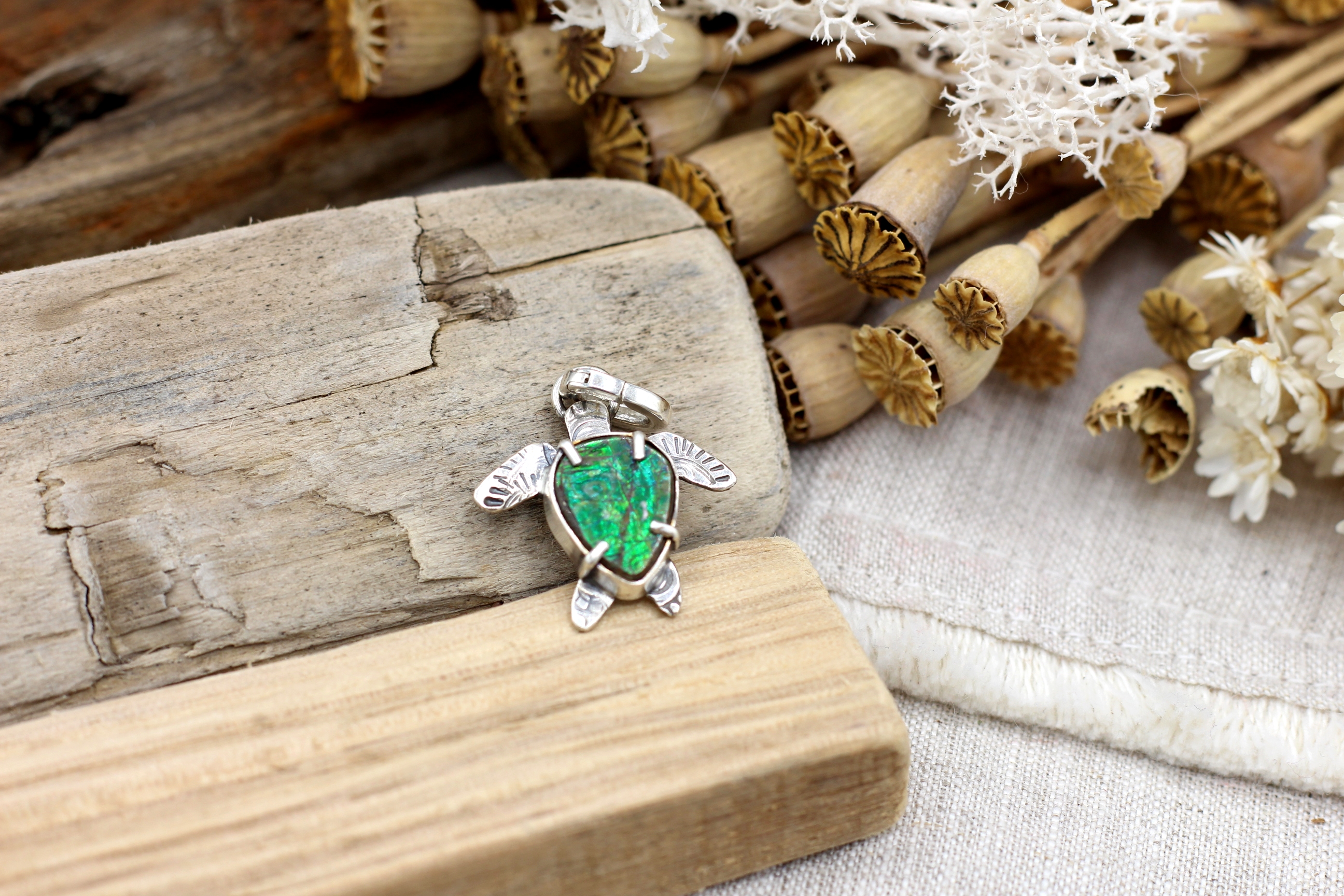 Anhänger aus Sterlingsilber mit Ammolit und Karabiner