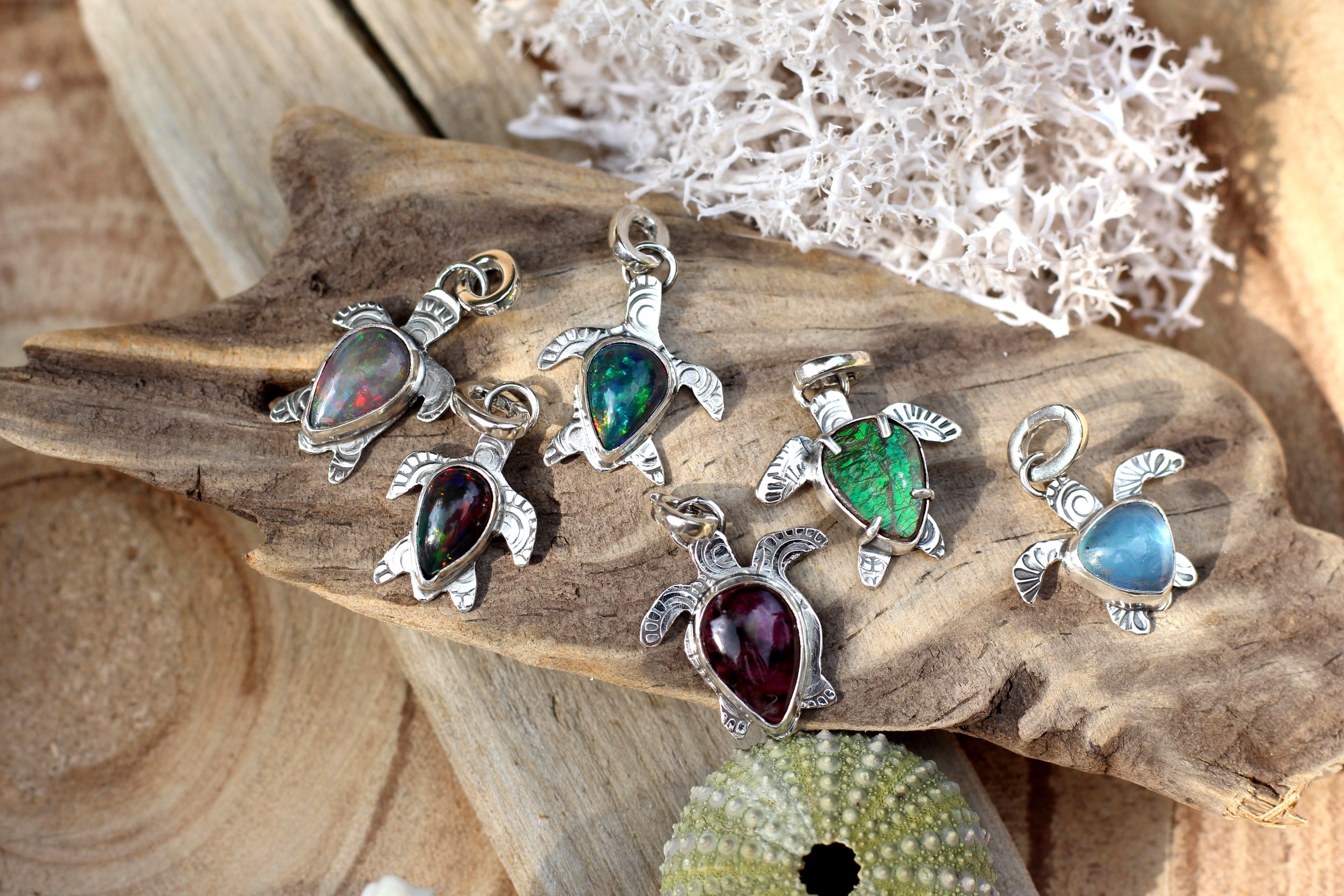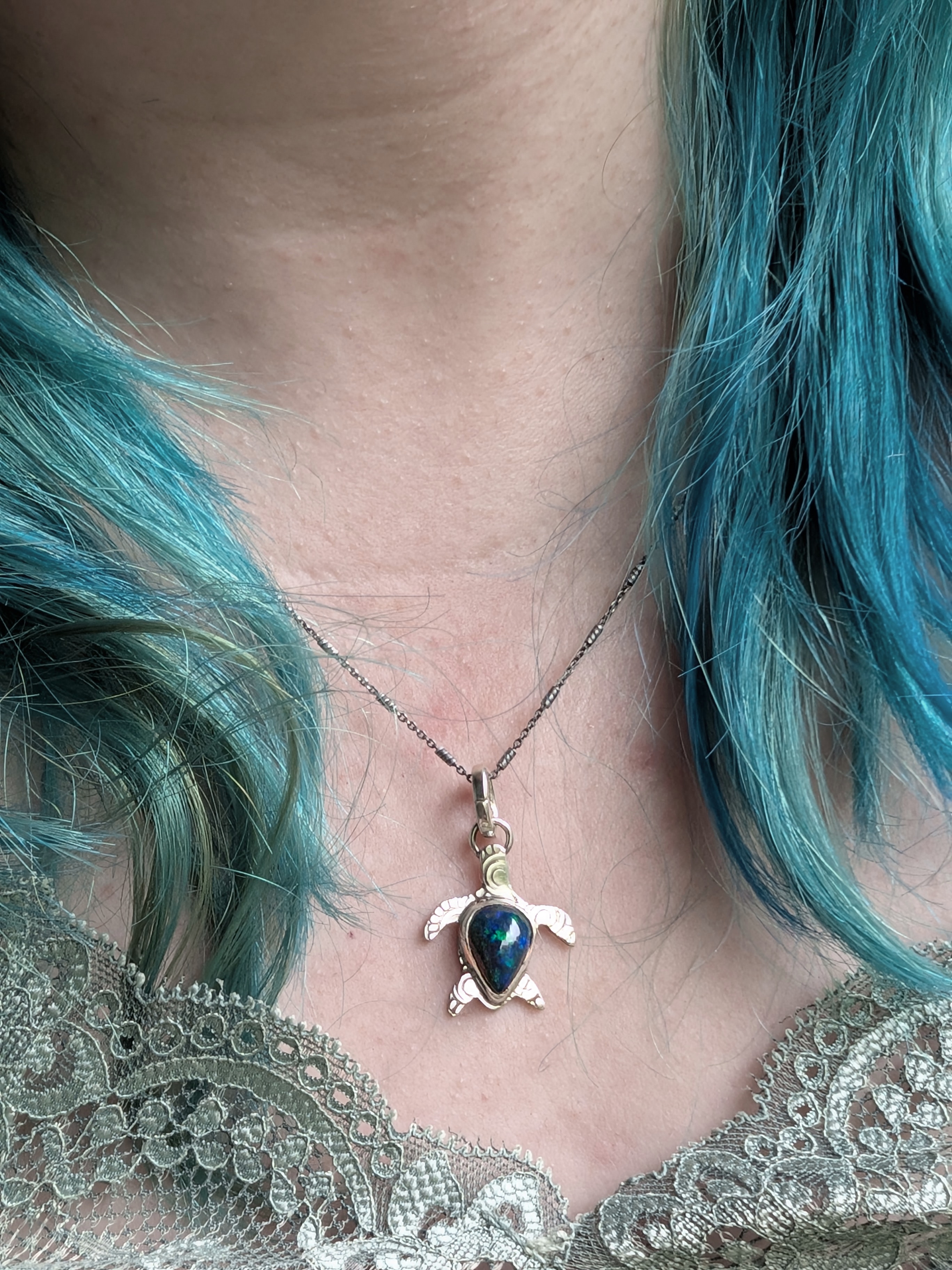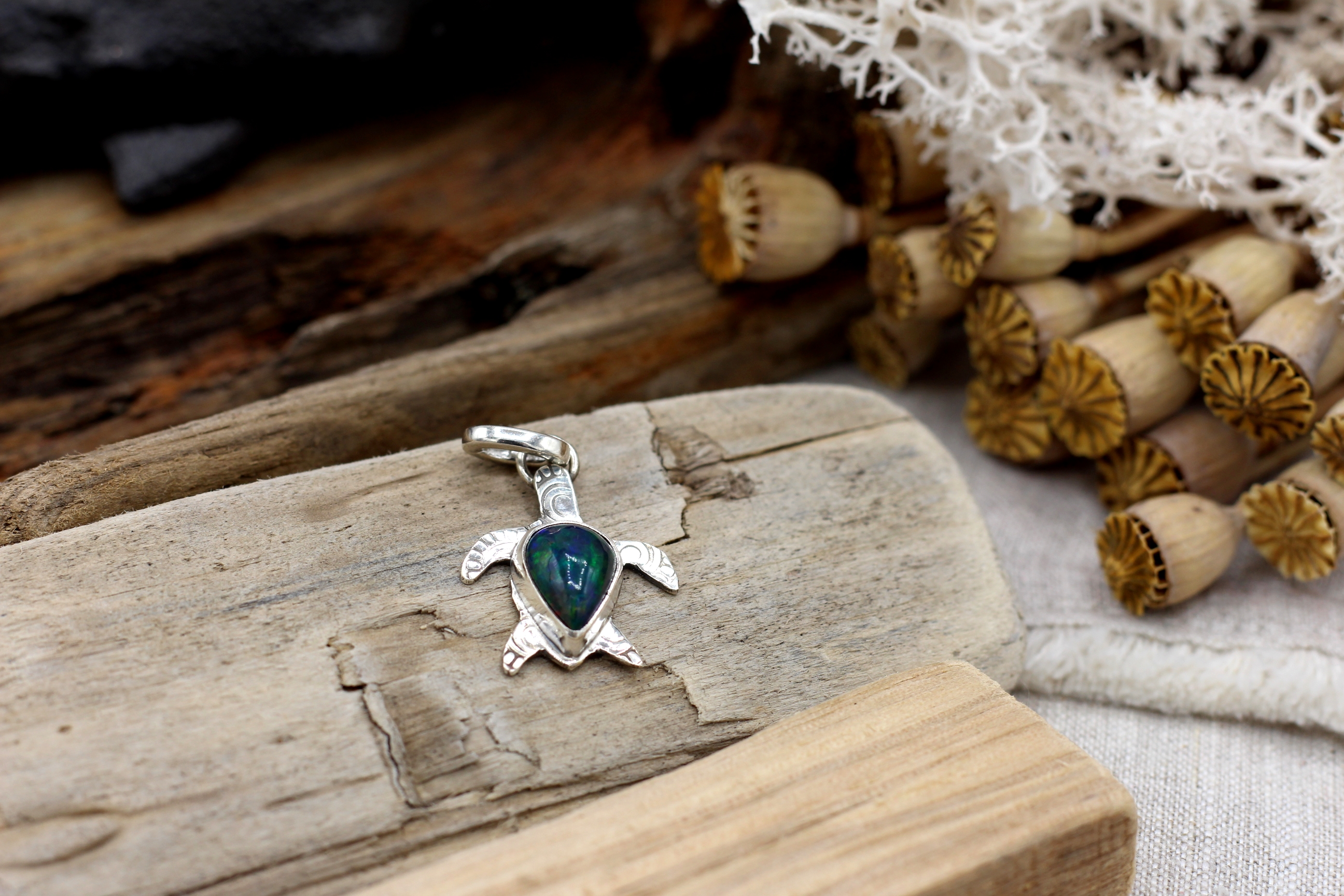 Anhänger aus Sterlingsilber mit Äthiopischem Opal und Karabiner