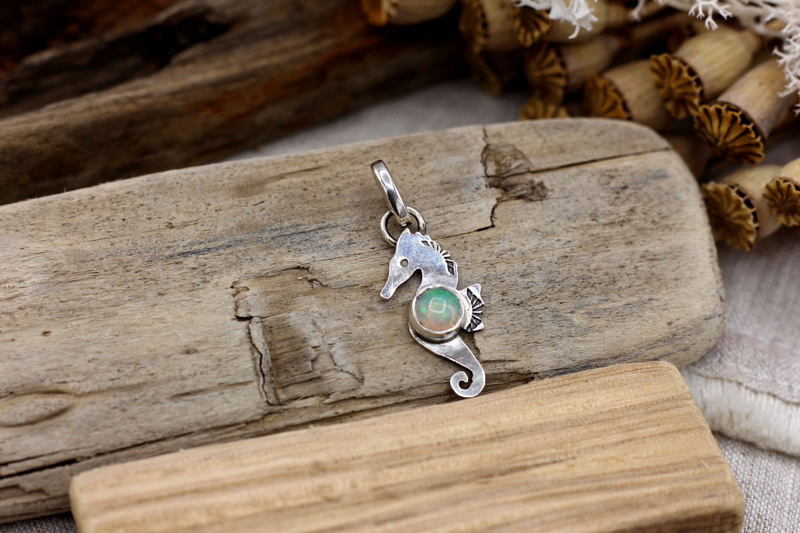 Anhänger aus Sterlingsilber mit äthiopischem Opal und Karabiner