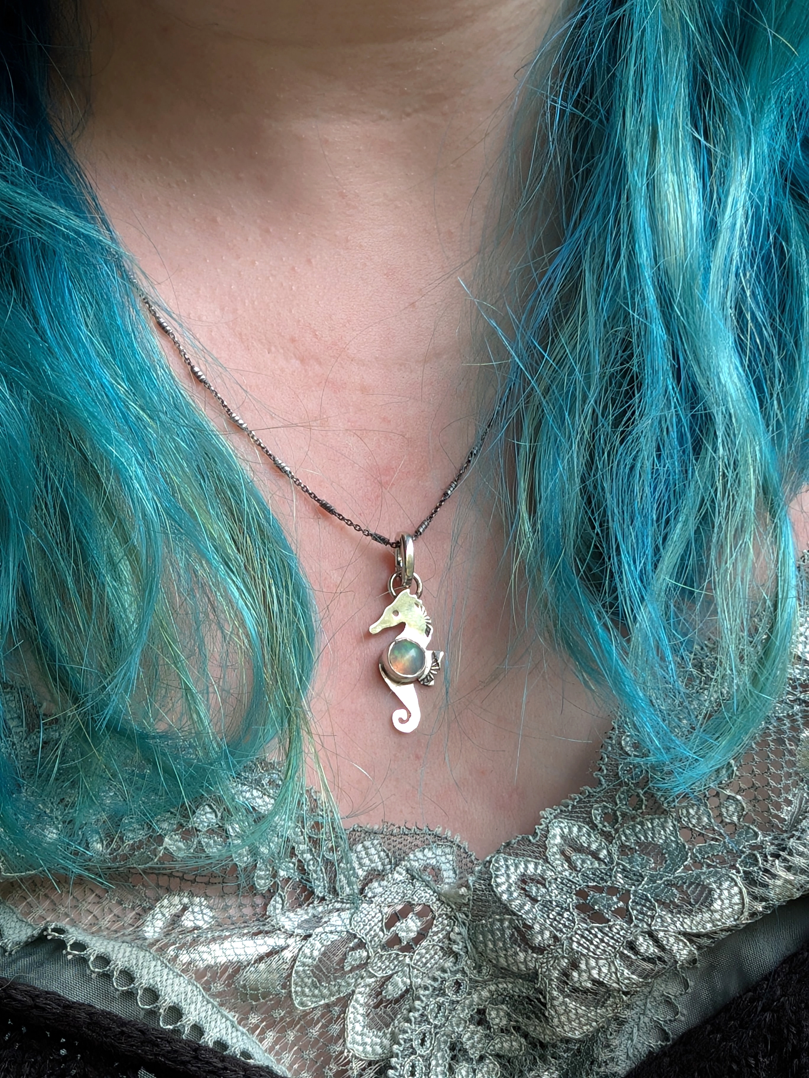 Anhänger aus Sterlingsilber mit äthiopischem Opal und Karabiner