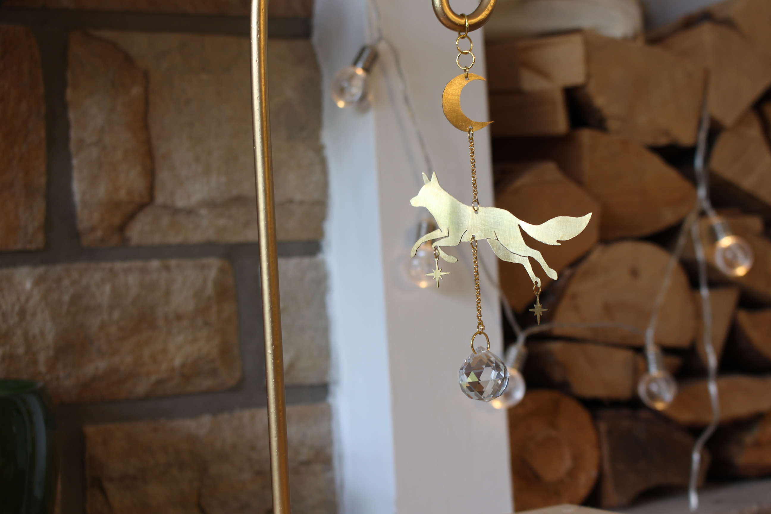Jeder Suncatcher wird von mir sorgfältig aus Messingblech handgesägt, gebürstet, gewachst und poliert und trägt am unteren Ende eine 20 mm große Glaskugel, die das Sonnenlicht einfängt und in funkelnde Lichtpunkte verwandelt.